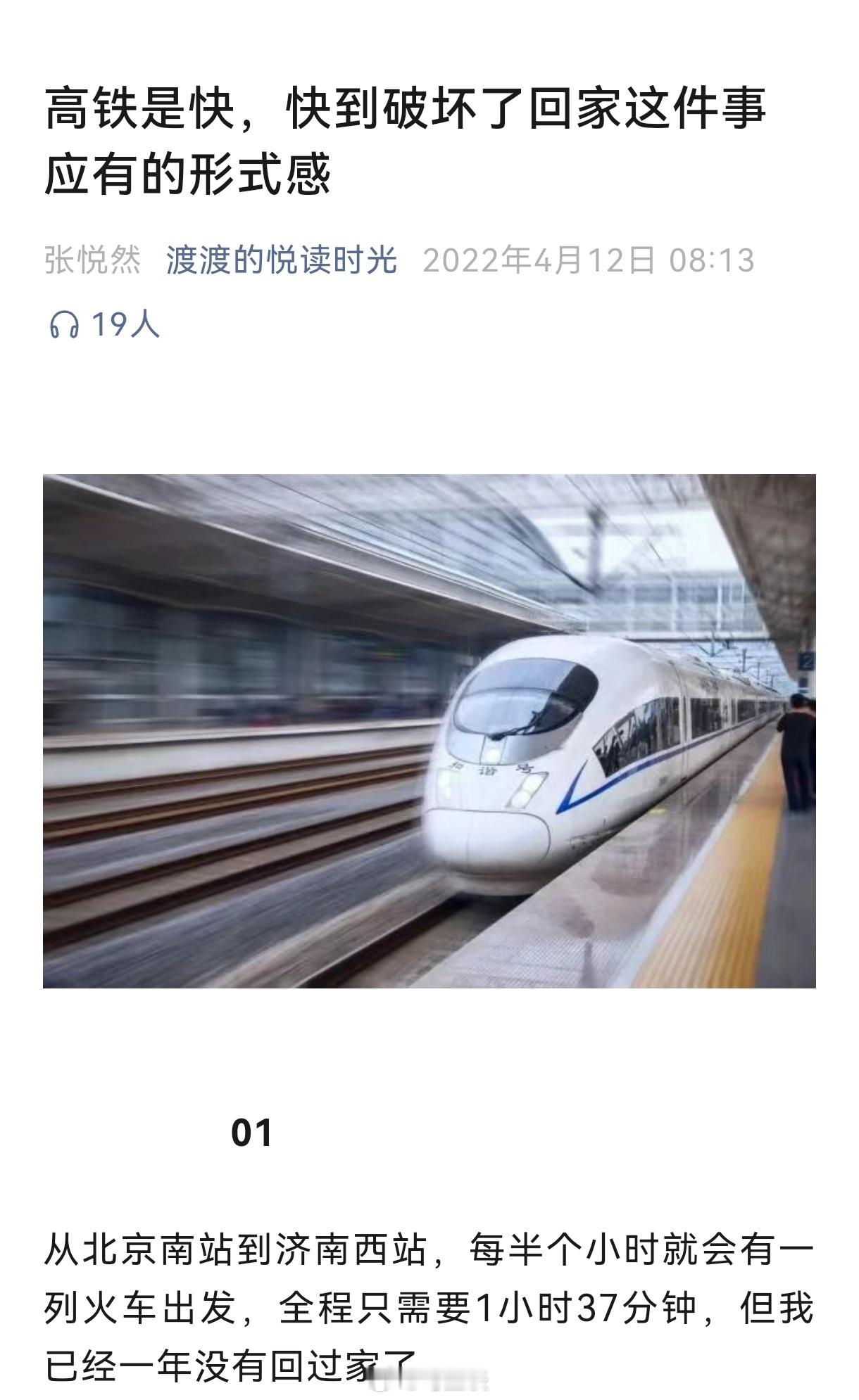 张悦然坐高铁:高铁是快,快到破坏了回家这件事应有的形式感