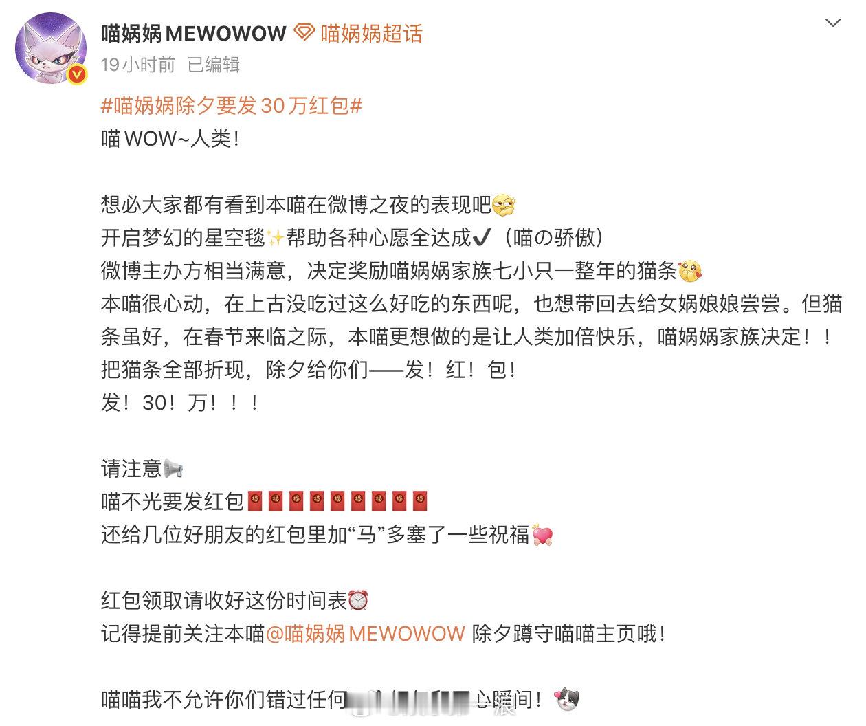 喵娲娲红包返场 什么?已经发了30万了还要返场?