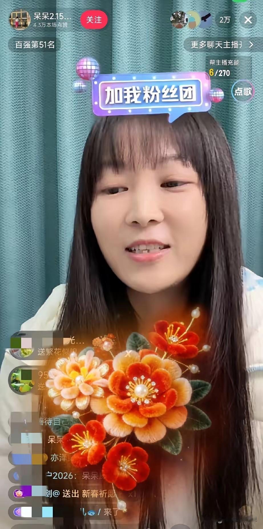 重庆呆呆不再呆呆了,打开了礼物功能,果然每次直播都是盆满钵满,真的不知道是哪些人在追求这样的主播。 我蹲过她几次直播,说句实在的,镜头前的她没什么亮眼才艺,也没有惊艳颜值,大多时候就安安静静坐着,偶尔笑一下,底下就有人刷“老婆好可爱”“呆呆我养你”。礼物特效从开播飘到下播,繁花似锦、新春祈愿,一个接一个,看得人眼晕。 我特意去翻了她的粉丝群,里面全是二十出头的小伙子,有的刚毕业挤在出租屋,有的还在上学靠生活费过活。有个叫小宇的,在工厂拧螺丝,每个月四千块工资,能给她刷三千。他说呆呆是他的精神寄托,现实里没人看得起他,只有在直播间刷礼物,呆呆才会念他的名字,说一句“谢谢小宇哥哥”。 还有个开网约车的大哥,每天跑十六个小时,攒的钱全砸进去了。他说自己离婚三年,孩子跟着前妻,呆呆的声音能让他晚上睡得着觉。我问他值不值,他说“至少有人理我”。 这事儿说穿了,就是一场精心包装的情绪买卖。呆呆抓住了这些人的孤独感,把他们的自卑和渴望,变成了直播间里跳动的数字。那些刷出去的钱,换不来一句真心,换不来一个拥抱,只能换来一句模板化的感谢,和下一次更狠的收割。 平台睁一只眼闭一只眼,只要流水好看,哪管你是不是在透支别人的人生。粉丝们心甘情愿,觉得自己在守护一份“纯粹”,其实只是被人当成了提款机。 你身边有这样的人吗?你觉得他们是真傻,还是在找个地方安放自己无处安放的情绪?