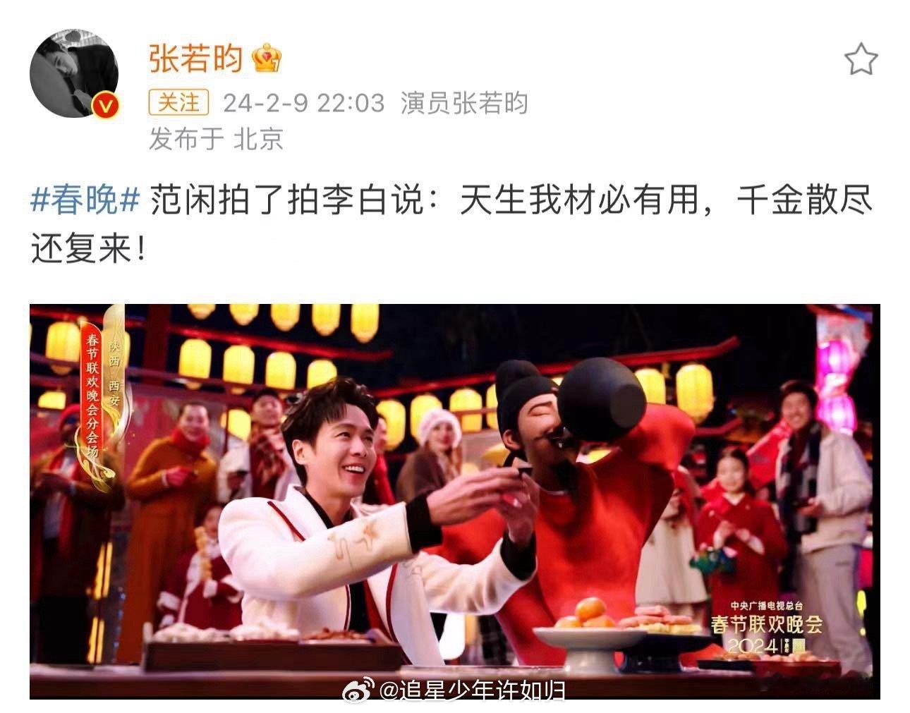 张若昀五登央视春晚 张若昀五登春晚,名场面不断!从初登台的小品到魔术出圈,从吃烧鸡爆热搜到对诗李白刷屏。今年义乌分会场,期待新惊喜!