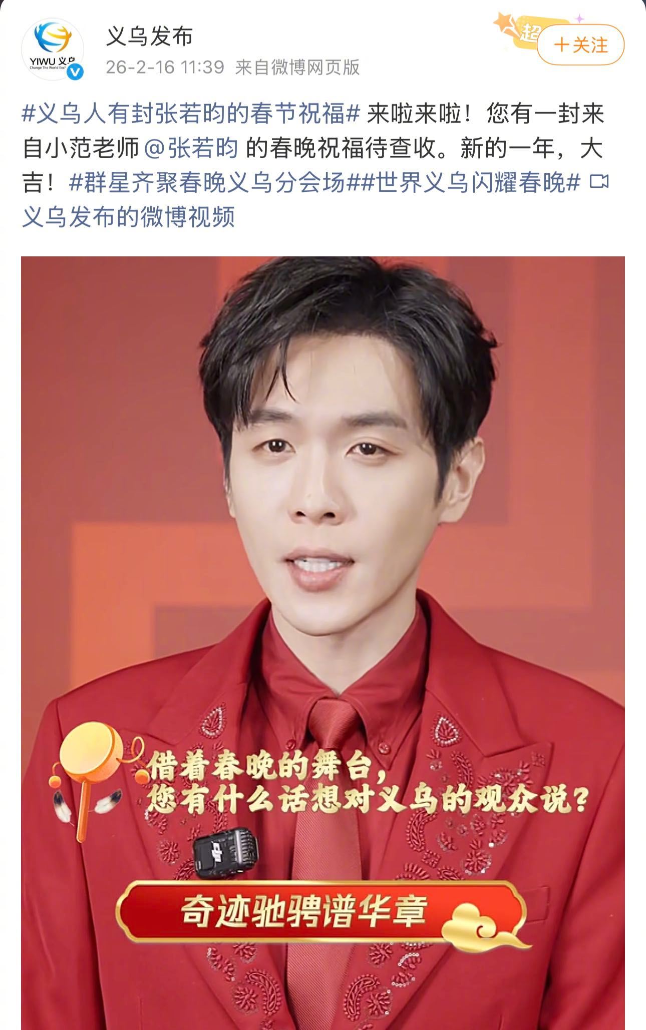 张若昀义乌春晚张若昀春晚造型 张若昀春晚图鉴更新!从20年《风雪饺子情》的小品首秀,到22年拧魔方魔术全网出圈,再到23年啃烧鸡名场面封神,24年范闲跨时空对诗,含金量持续狂飙!义乌分会场,红西装帅气满分,准备好再炸一次屏!