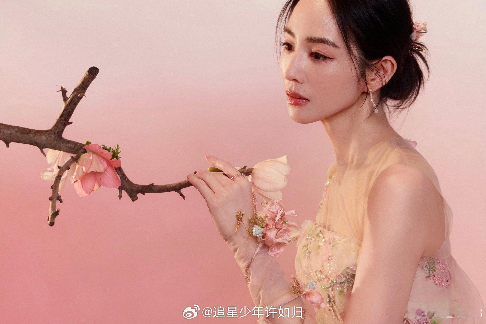张钧甯背后好大一朵粉黛 巨型粉黛丛中的张钧甯,美得像一幅画!非遗点缀的华服温柔飘逸,她眼波流转间春意盎然。这春晚造型,太仙了!