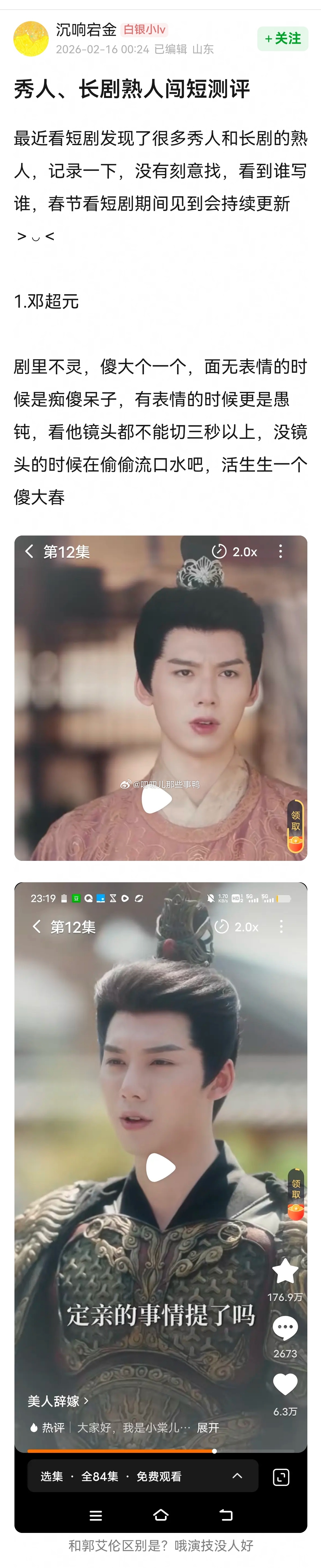 形容得太🈶意思了→“秀人、长剧熟人闯短测评”~😂😂