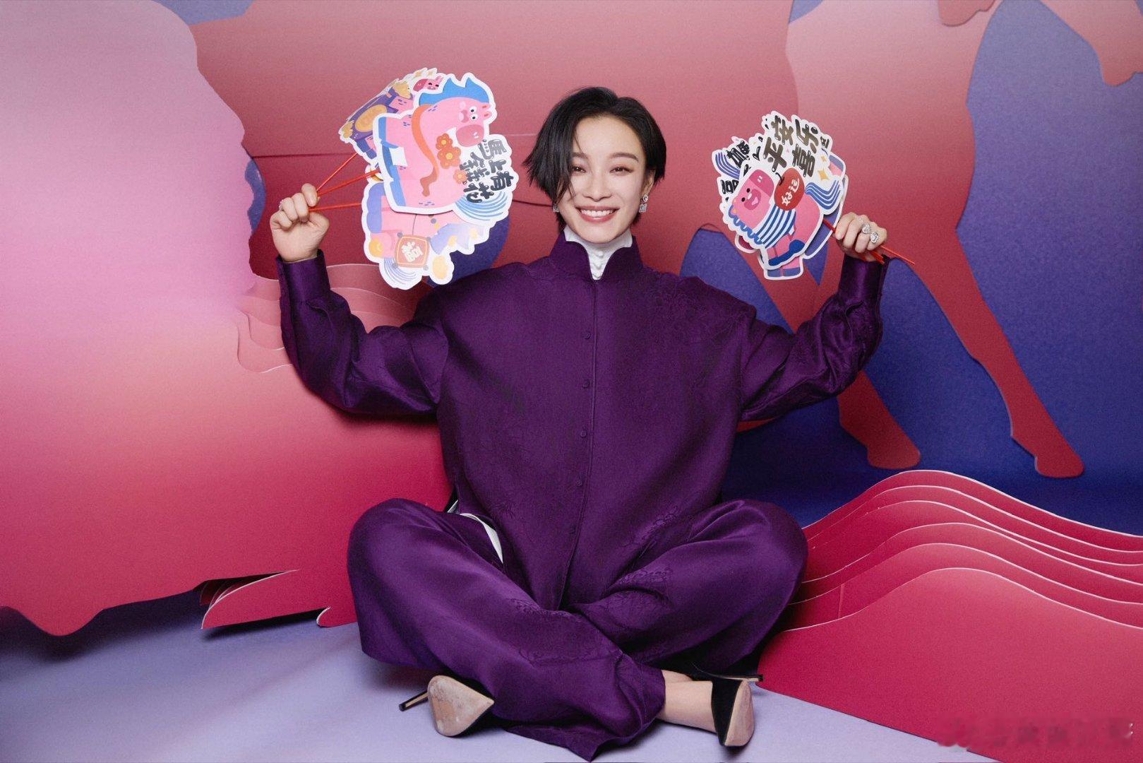 倪妮紫衫盘扣藏岁月,纸马灯笼摇春风,东方意境在衣袂间流淌成诗。非遗纹样与现代剪裁共舞,传统新生是最美的新年序章。倪妮九紫离火新中式套装春晚新春茶话会