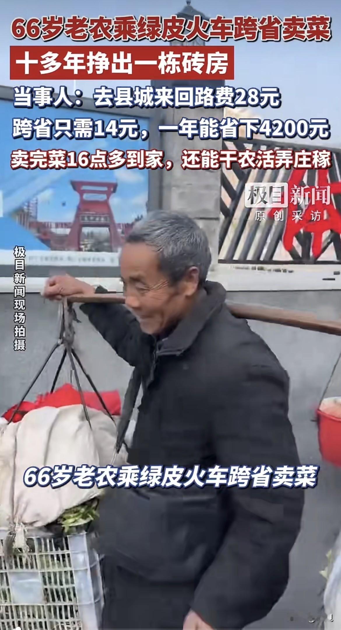 家人们谁懂啊,66岁的人了,一米六的个子,挑着140斤的菜,扁担两头压得弯弯的,走路不带喘。 2月14号,腊月二十七,早上7点,湖南怀化麻阳县锦和火车站,站台上乌泱泱全是挑扁担的老乡。有的筐里是白菜萝卜,有的是麻阳冰糖橙,还有拿桶装活鱼的。 他们要坐7272次火车,去贵州铜仁卖菜。 这趟车2006年开通,从湖南怀化开往重庆梅江,全程178公里,走一段湖南,穿过贵州,再到重庆,最低票价2块钱,20年没涨过价 。 锦和镇到铜仁,四五十分钟,车票7块钱 。 66岁的刘昌和挤在人群里,扁担压在肩上,背稍微有点佝,但脚步利索得很。这趟车他坐了20年,从开通那天起就没断过。 他说,一天最多能卖三百多块,卖完菜下午四点多到家,还能下地干农活 。 前几年,靠着这趟车,他家盖了栋两层砖房,花了三十万。 记者问他孩子们要不要钱,他说不要,我当爷爷了,孩子们也不要我们的钱 。 旁边55岁的张新桃,是刘昌和邻居。她把这趟车的车票一张张攒下来,数了数,最多那一年坐了260多趟 。 火车没开通前,锦和镇赶集只有6场,一担菜要卖五六天。现在天天能去铜仁,当天去当天回 。 她丈夫在外面打工,她一个人在家种地卖菜。一年除去肥料种子,能挣两三万,用了13年,家里也盖了楼。 她说的话特别直白:这趟慢火车对我来说,意味着奔小康。我们村家家户户都种了很多菜和水果,如果没有这趟车,家里的菜根本卖不完 。 下午3点50,火车从铜仁返回锦和。站台上,老乡们挑着空扁担下车,脚步轻快。 车厢里其实有门道。 这趟车叫公益慢火车,平均时速40公里,比高铁慢多了,但为沿线村民改了不少细节 。以前没空调,2022年7月全换成空调车了,夏天凉快,菜也不容易蔫 。 最难的是放筐。一车厢扁担箩筐,过道根本走不动。铁路部门干脆把每节车厢两头的前后座椅拆了,腾出地方专门放大件行李 。这一拆,反倒成了个流动摊位,老乡们上车就把菜摆开,车厢里直接开卖 。 锦和站、桃映站这些地方,还专门设了乘降所,网上不卖票,上车再买,先上车后补票,保证不落下一个人 。 铜仁那边也配合。三年前在火车站附近的金码头市场,专门划出"麻阳果蔬集市",一百多个室内摊位,不让老乡在外面日晒雨淋 。 每天上午9点火车到站,"扁担大军"涌出站口,走几分钟就到市场开摊。铜仁市民早就等着了,有人专门等他们来了才买菜,说坐火车来的菜新鲜 。 卖到中午基本收工,下午两点多坐车返回。回家还能下地,明天接着摘接着卖 。 刘昌和算过账:去麻阳县城卖菜,坐中巴往返28块;坐这趟慢火车去铜仁,往返14块。一年按300天算,光路费就省下4200块 。 省出来的钱,加上多卖的,十几年下来,一栋楼就有了。 这趟车不光拉菜,还拉人。沿线苗寨、侗寨、土家族寨子的孩子,坐它去铜仁上学,50分钟到,车票7块,比汽车便宜一半还多 。铁路职工也坐,老百姓赶集也坐,老乡们叫它"致富车""幸福车" 。 列车员有句话说得挺实在:我是农村长大的,小时候看父母赶集卖菜,卖不完挑回来那个愁眉苦脸,我心里就不是滋味。现在能帮一点是一点 。 2024年,这趟车的列车员帮农户直播带货、联系客商,全年帮销农产品约1180万 。 刘昌和不知道这些数字。他只知道,早上挑出去140斤,晚上空着筐回来,兜里装着卖菜的钱。 那根扁担跟了他多少年,他自己也记不清了。 现在他家楼盖好了,儿子也不用他贴钱,但他还是每天挑菜上车。他说一天能卖三百多块,不卖可惜了。 2月15号,他应该又去铜仁了。腊月二十八,年前最后一波生意。 火车还在开,人还在挑。 那根弯弯的扁担,挑了一辈子,还没放下。 你说,这人是不是挺硬气的。