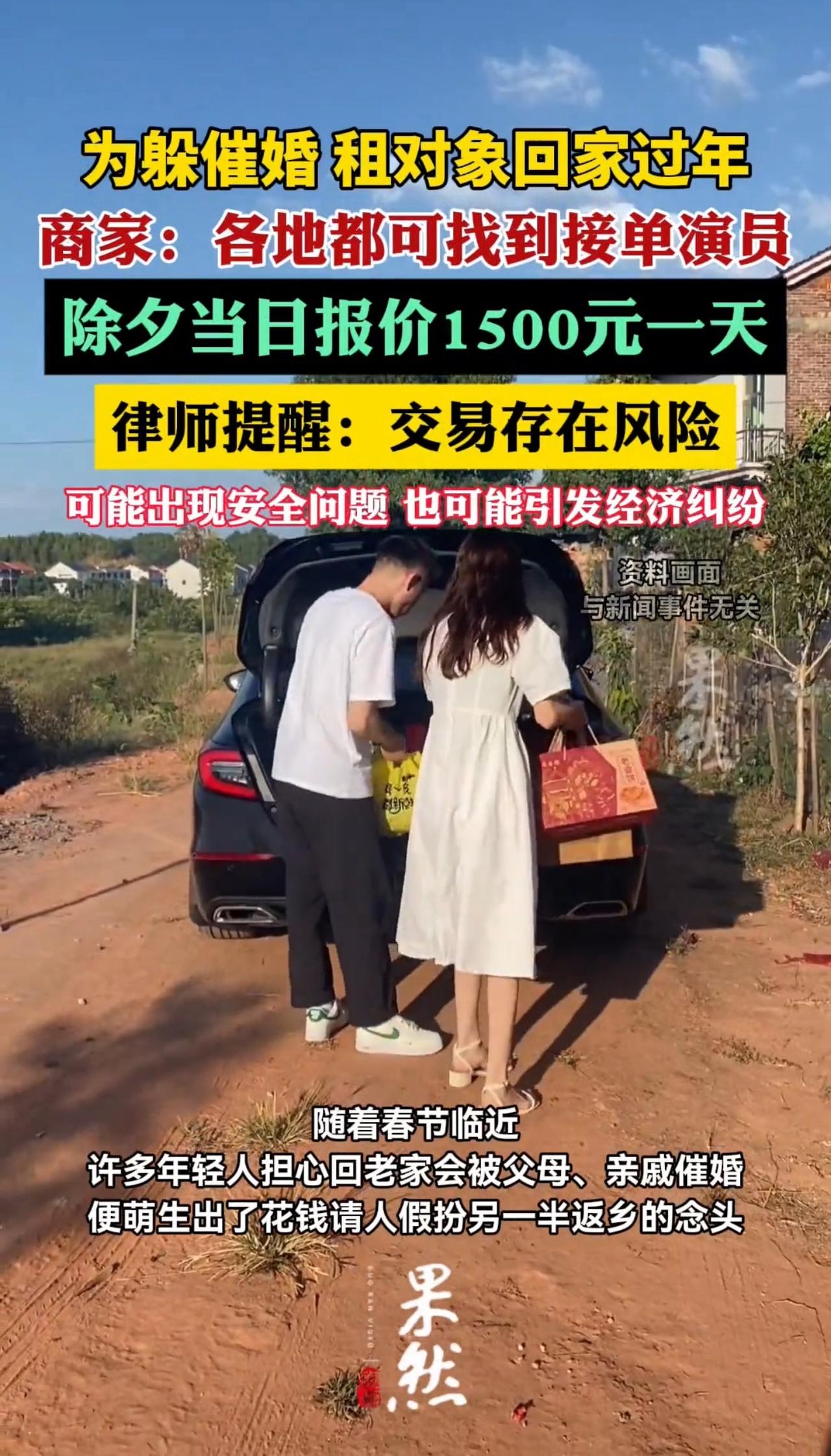 最近有消息说,深圳除夕当天租男友的价格直接飙到了3000块一天,不少二手平台和社交群里都在推这种服务,打着专业演员、线下救场的旗号,说能陪回家过年、应付亲戚盘问,一到过年就有上百人去询价,价格越靠近除夕越贵,俨然成了一门火爆的生意。很多年轻人选择租对象回家,不是真的想谈恋爱,而是被过年的催婚逼得没办法,一边是父母盼着成家的期待,一边是自己不想将就的婚恋观,夹在中间左右为难,只好花高价买几天的清净,用一场表演换团圆饭上的和睦,躲开那些什么时候结婚、找没找对象的连环追问。 可这份用金钱换来的安稳,背后藏着的全是看不见的坑,法律和安全风险一个比一个吓人。法律上早就明确,人身不能作为租赁标的,所谓的租友协议违背公序良俗,根本不受法律保护,就算签了合同也是一张废纸。要是提前付了定金,对方突然失联、半路撂挑子,钱大概率追不回来;要是一起回家时,对方拿走长辈给的红包、礼物,最后闹起纠纷,想维权都找不到门路。更让人担心的是人身安全,租来的人彼此完全不了解,一起坐车、独处、回老家,人生地不熟,一旦遇到心怀不轨的人,发生猥亵、诈骗甚至更严重的伤害,想求助都难,到时候花钱买的不是安心,而是提心吊胆。 其实我们都懂,年轻人不是不想拥有幸福,只是不想为了应付催婚随便妥协,不想把婚姻变成完成任务,更不想因为家人的期待委屈自己。租对象回家,看似是聪明的解围办法,实则是自欺欺人的表演,暂时堵住了亲戚的嘴,却解决不了根本问题,反而让父母空欢喜一场,等谎言被拆穿,只会带来更多的失望和矛盾。3000块一天,买来的只是短暂的平静,却要承担未知的风险,实在太不值得。 催婚的压力我们都感同身受,家人的期盼也能理解,但真正的孝顺不是用谎言敷衍,而是坦诚沟通,让家人明白自己的生活态度和对感情的认真。与其花高价租一个陌生人演戏,不如好好和家人聊一聊,说说自己的想法,讲讲自己的规划,就算暂时没找到合适的人,真诚永远比表演更能打动家人。面对催婚,我们可以不妥协,但千万别用冒险的方式去应对,别让本该温暖的过年,变成让自己担惊受怕的经历。 面对过年催婚,你有没有过无奈的时刻,又会用什么办法应对呢? 来源:第一现场