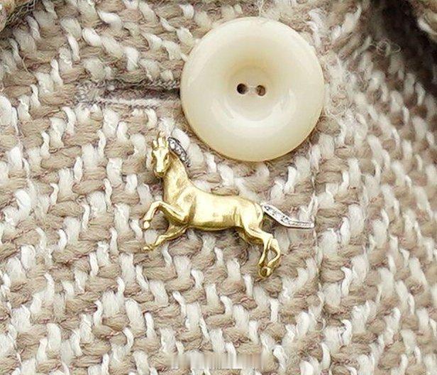 珠宝 英国安妮公主的黄金马胸针,就是一只立体的骏马,主题为黄金材质,马鬃毛和尾巴用了点碎钻。看着不大,细看细节到位,做得还是比较精致的。粗略搜了下,安妮大概从80年代开始戴,作为狂热赛马爱好者和奥运赛马参赛选手,给自己整一只合情合理。贵圈似乎就这马元素珠宝了?大家新年快乐~