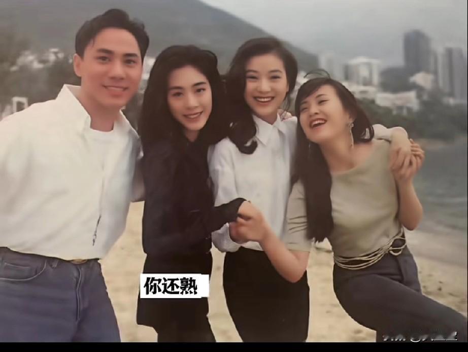 一个别开生面的组合, 三女一男, 约会地点是赤柱的后滩。 四人都同属宝丽金唱片公司, 身处花丛中的他难掩风骚, 更不忘尽显男士风度, 对三位女生呵护有加, 场面温馨又有趣。 后滩的风景因他们而更加迷人!你还熟知他们是谁吗?