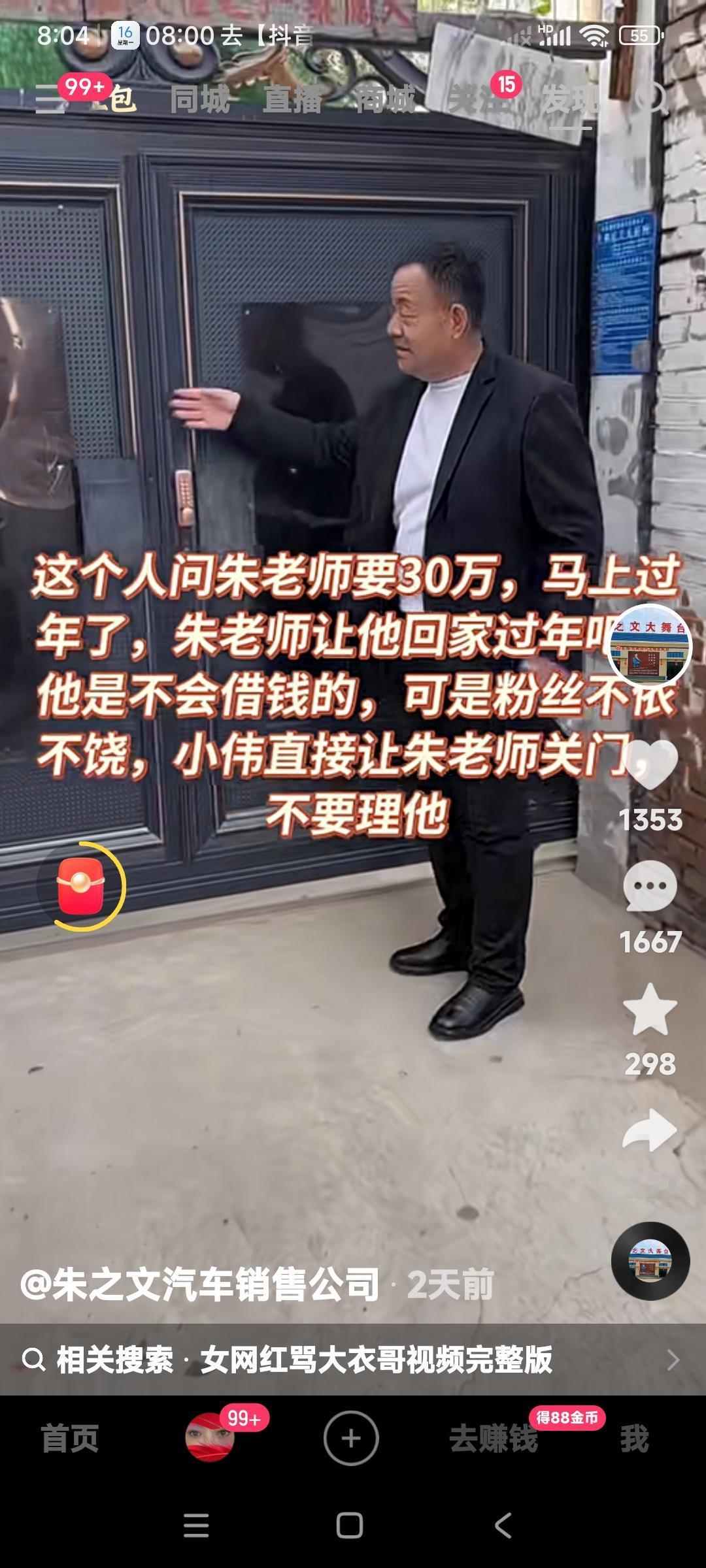 开口就要30万。 口称过年了,不给钱又不依不饶。 我就纳闷儿了,无亲无故为啥要给你30万? 如果要个三块5块或者30 50也说得过去,大衣哥慈善心一发,给你300 500的也有可能。 一开口30万有点太过分了吧。