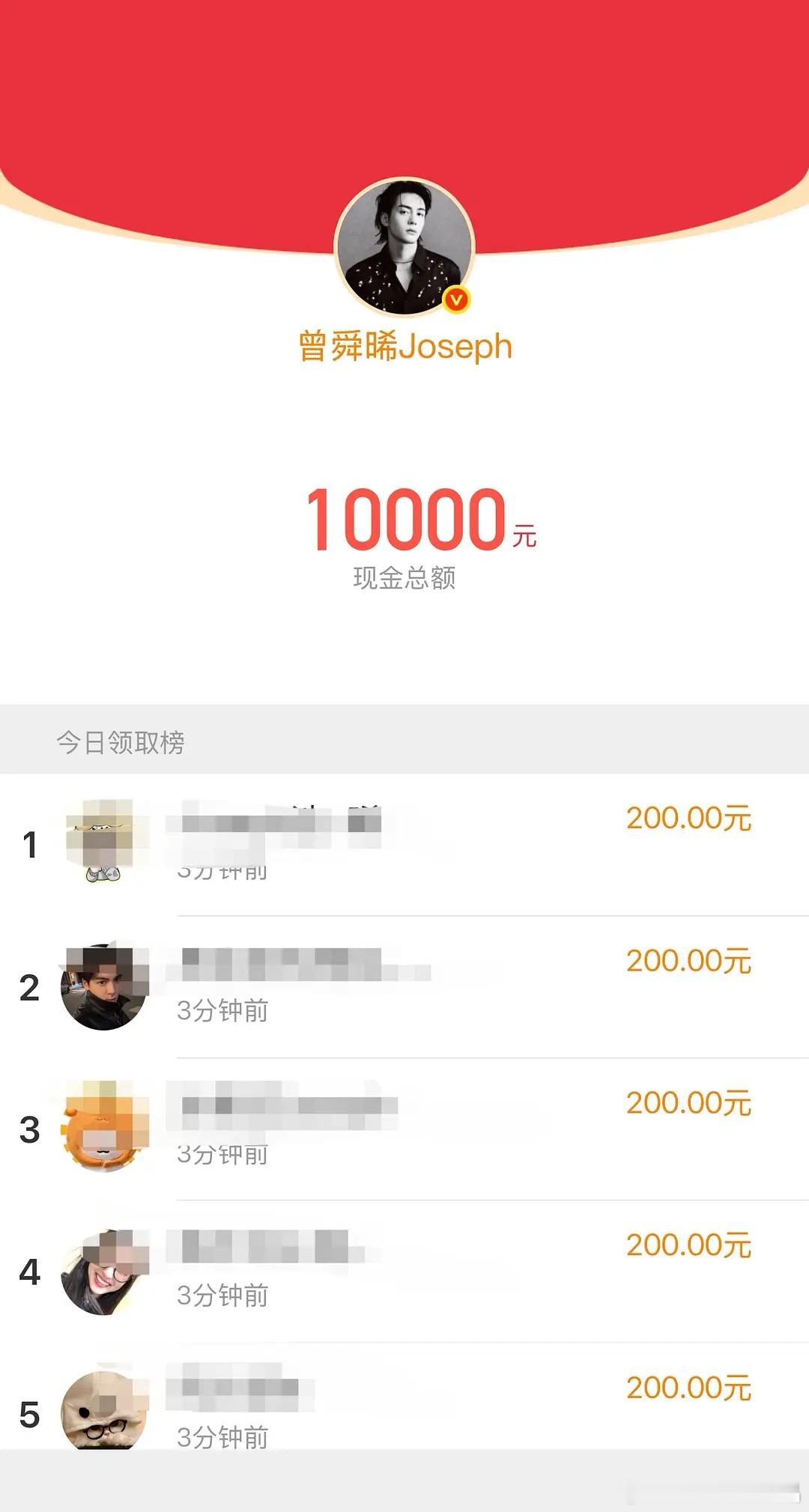 曾舜晞会来事,红包面向所有人发了6w,给钻粉发了人均200