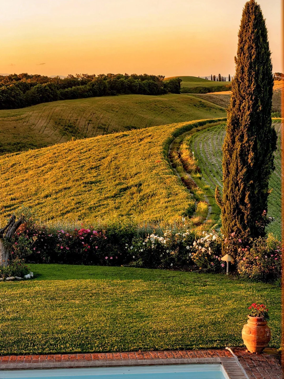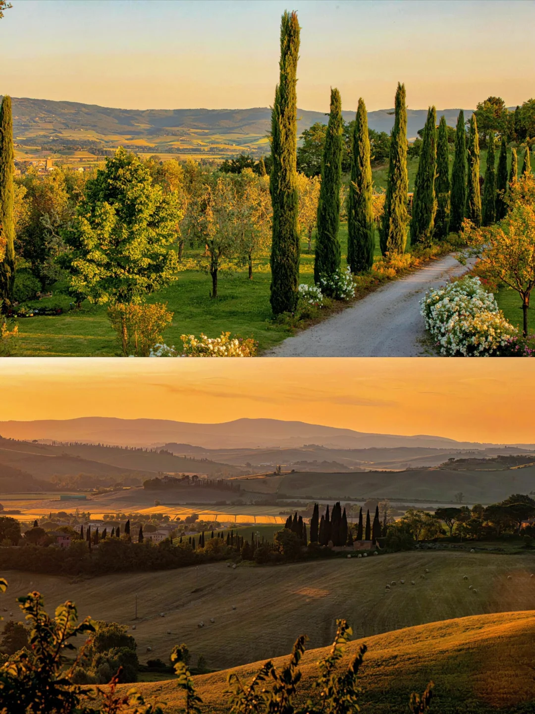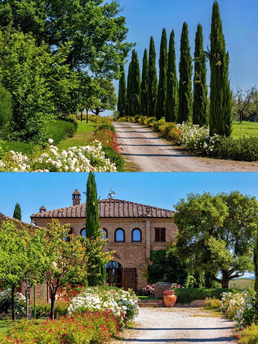▪️ 在民宿里就能欣赏360 °锡耶内斯山的迷人景色,花园种满了鲜花,门口还有经典柏树道路