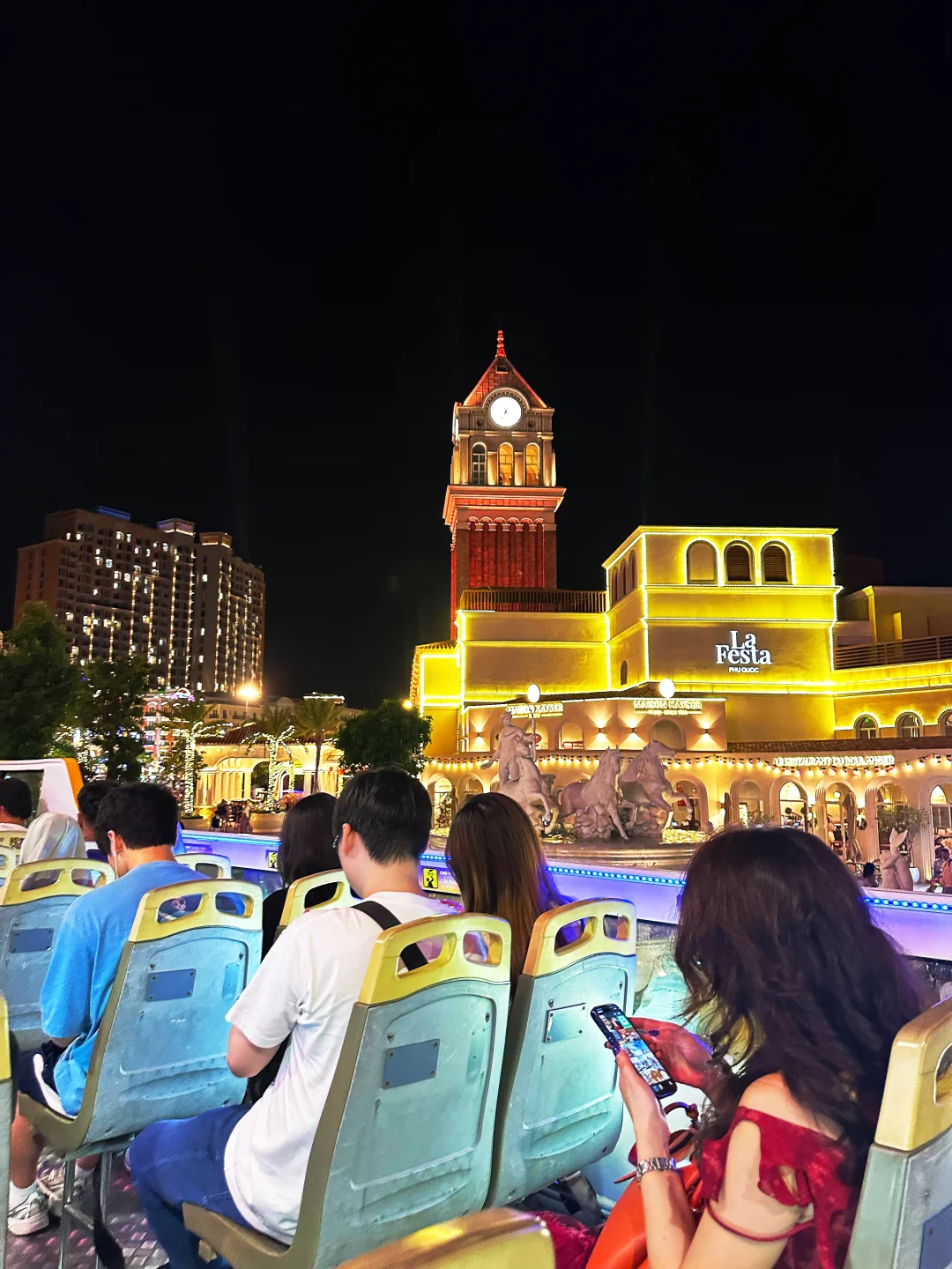 🚌免费双层巴士:只在日落小镇运行,中途会停靠好几个站,我在喷泉广场那站上车,实测夕阳时可以绕一圈回来,再去看烟花