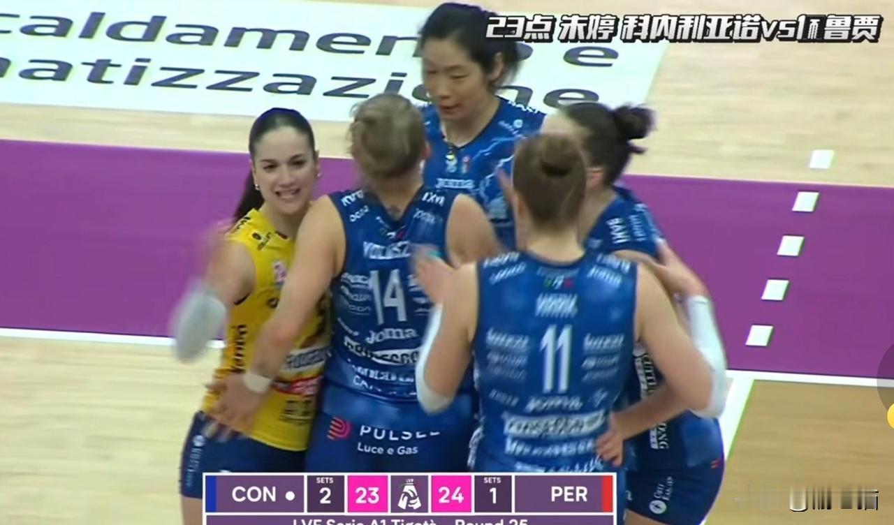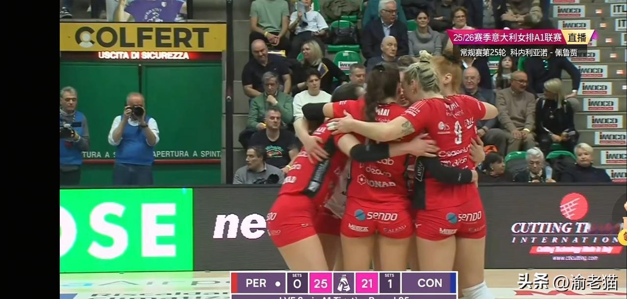 意甲女排,榜首试炼,朱婷逆转生死局 今天凌晨,意甲女排一场焦点战,领头羊科内利亚诺,对的是垫底佩鲁贾,桑塔雷利想锻炼新人,主力想休息,派了全替补上场,大家觉得很轻松,第一局25比18拿下,第二局佩鲁贾却很拼,25比21扳回一局,谁也没想到,比赛突然就难了。 第三局科内利亚诺又赢了,第四局比分却落后了,桑塔雷利怕打决胜局,赶快换上主力,沃洛兹哈克都来了,比分在缩小,场面很紧张。 第四局比分22比24,科内利亚诺快输了,教练换朱婷上场了,她一上场就很厉害,连得了两分,24比24追平了,太关键了,科内利亚诺26比24赢了,大比分3比1胜利,避免了危险。 这场险胜,科内利亚诺榜首稳了,朱婷价值太大了,大家知道,她就是关键分女皇,她的作用没人可替代,她是球队的救星。