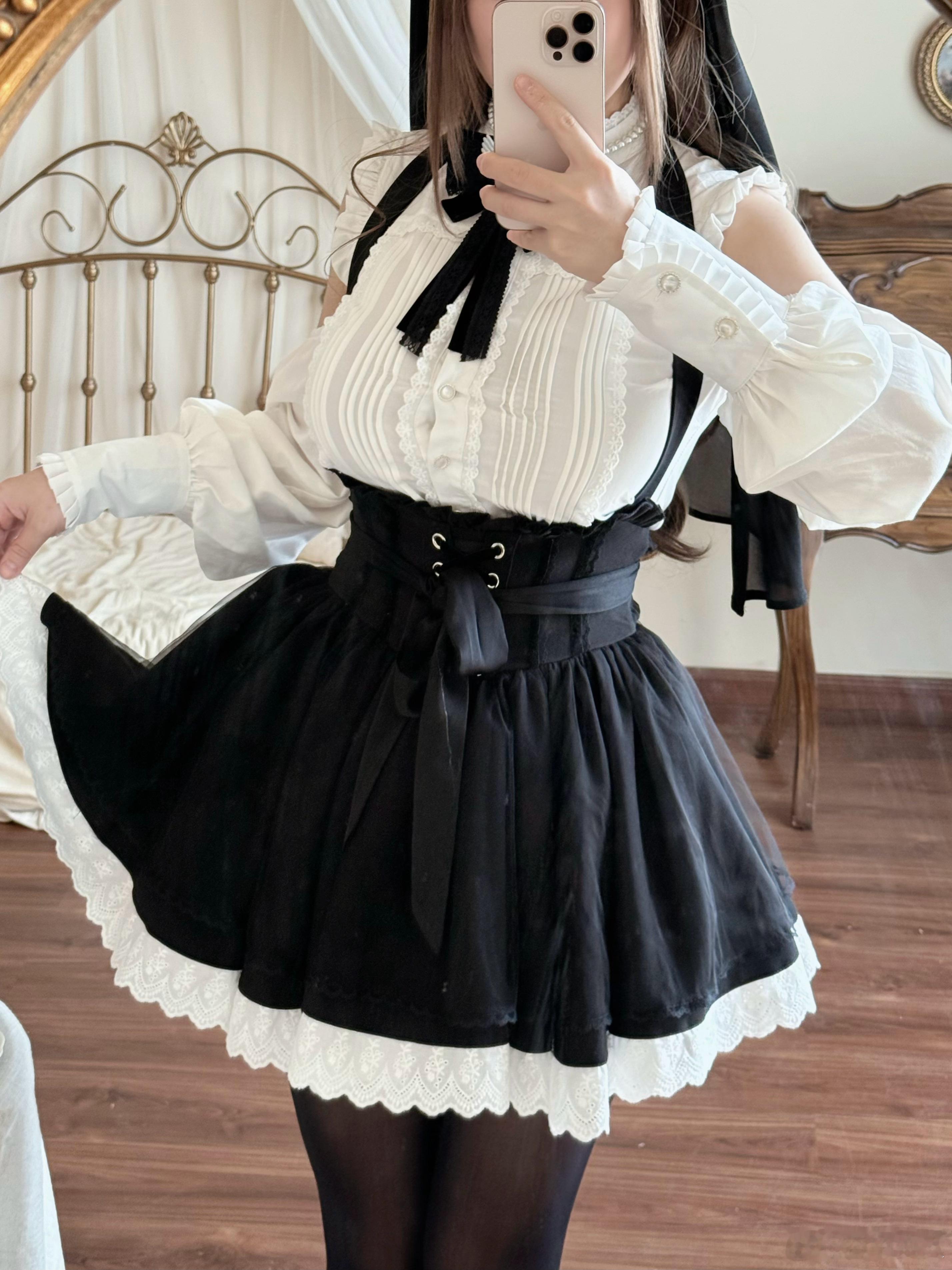 宝宝们。卡码往大拍哈火华家原创设计 火华家原创设计 「神父の黒猫」大小姐哥特风修女服猫耳 现货