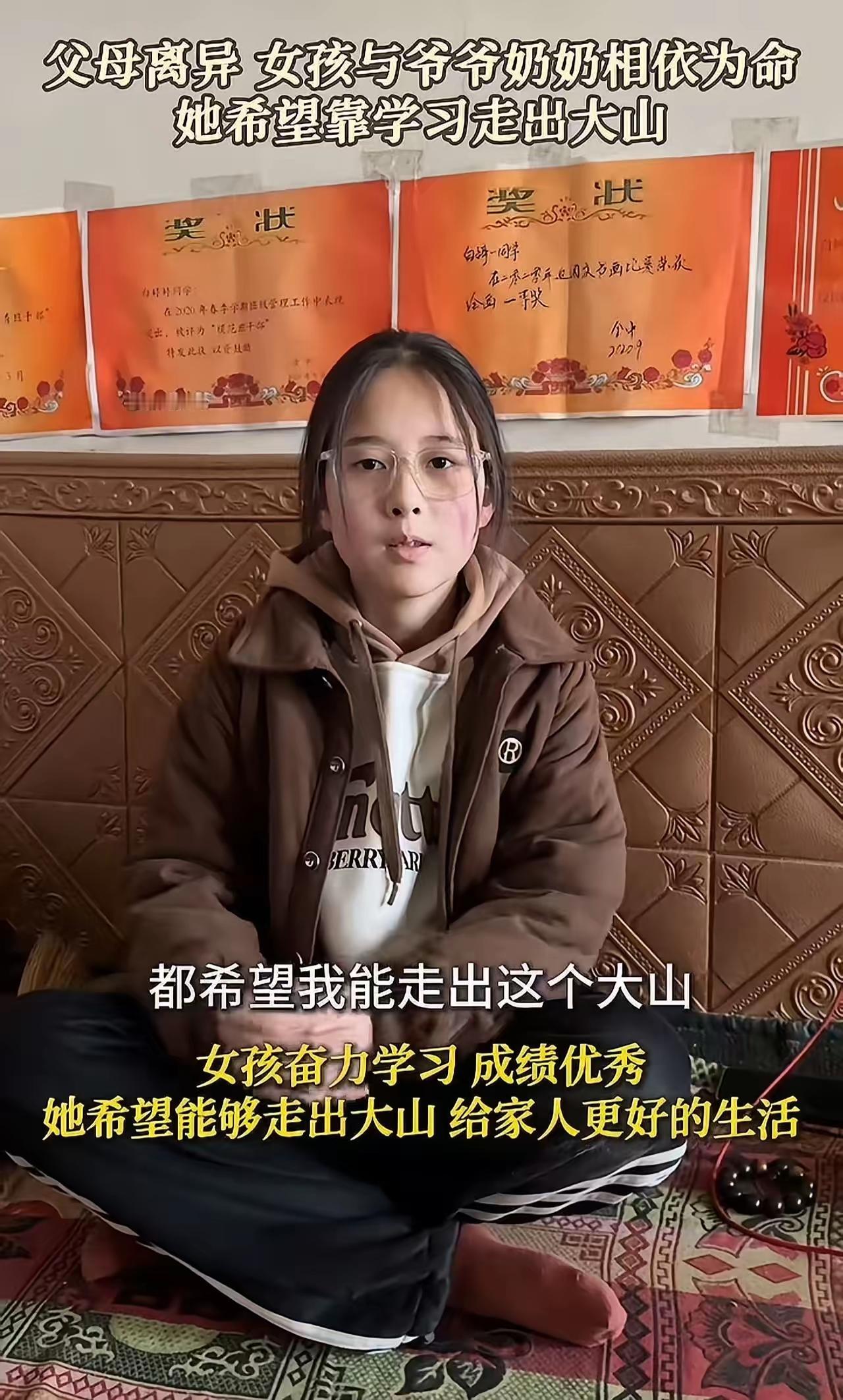12岁女孩一锅腌菜吃一周,被问“为啥不吃肉”时一句话让全网泪崩!她墙上贴满奖状,梦想竟是…… 在大山深处的一个破旧土屋里,12岁的林小雨正和爷爷一起吃午饭——两个干硬的白馒头,配上一盘颜色发暗、不知腌了多久的咸菜。屋外寒风呼啸,屋内没有暖气,只有灶台上残留的一点余温。就在这时,一群志愿者推开了这扇吱呀作响的木门,眼前的画面让他们瞬间红了眼眶。 “小朋友,你怎么不吃肉呀?”一位女志愿者蹲下身,轻声问道。 小雨抬起头,眼神清澈却透着与年龄不符的成熟。她抿了抿嘴,声音很轻,却字字扎心:“因为肉太贵了……我们能吃上腌菜,已经很好了。” 这句话,像一把钝刀,狠狠割在每一个听到的人心上。 小雨出生在西南某省一个偏远山村。在她4岁那年,母亲因无法忍受贫困和生活的重压,毅然决然地离开了家,再也没有回头。父亲为了养活女儿和年迈的父母,不得不远赴千里之外的城市打工,一年到头只能回来一次,甚至有时连春节都回不来。从此,小雨便和70多岁的爷爷奶奶相依为命。 家里没有冰箱,没有电视,连一张像样的床都没有。三个人挤在一张吱嘎作响的木板床上,冬天靠烧柴取暖,夏天靠风扇吹风——可那台风扇还是村里人淘汰下来的。但即便如此,小雨把家里收拾得干干净净,灶台擦得发亮,地面扫得一尘不染。爷爷说起孙女,眼里满是骄傲:“她放学回来就做饭、喂鸡、劈柴,从不喊累。有时候我腿疼走不动,她就自己去地里拔草,小小一个人,背都弯了。” 志愿者走进小雨的房间,瞬间被墙上的景象震撼了——整整一面墙,贴满了奖状!从一年级到六年级,几乎每学期都是“三好学生”“学习标兵”“优秀少先队员”。泛黄的纸张有些卷边,但每一张都被平整地贴好,仿佛那是她最珍贵的宝藏。 “你成绩这么好,为什么这么拼命读书啊?”志愿者忍不住问。 小雨擦了擦刚才因提到妈妈而流下的眼泪,挺直腰板,目光坚定地说:“我想走出这座大山,去大城市上大学,然后挣钱!我要给爷爷奶奶盖新房子,给爸爸买新衣服,还要……还要让他们再也不用吃腌菜!” 她说这话时,声音不大,却带着一股不容置疑的力量。那一刻,在场所有人都沉默了。有人悄悄抹泪,有人掏出手机拍下这面“奖状墙”,还有人当场决定资助她直到高中毕业。 更令人心碎的是,当志愿者小心翼翼地问:“如果现在你妈妈站在你面前,你想对她说什么?” 小雨的眼神一下子黯淡下来,嘴唇微微颤抖,泪水在眼眶里打转。她低下头,声音哽咽:“我就想问她……为什么不要我?如果她没走,我们一家人该有多幸福啊……” 话音未落,泪水已如断线珠子般滚落。她没有哭出声,只是紧紧攥着衣角,肩膀微微发抖。那不是撒娇的哭泣,而是一个孩子在无数个夜晚独自吞咽委屈后,终于被温柔触动的崩溃。 这个故事被志愿者发到网上后,短短三天,阅读量突破800万,评论区彻底沦陷: “我刚给我女儿买了最新款手机,看到这个女孩吃腌菜还说‘很好’,我羞愧得睡不着!” “她才12岁,却比很多30岁的成年人更懂得责任。” “请帮帮她!这样的孩子不该被大山困住!” 目前,已有多个公益组织联系当地村委会,计划为小雨家庭修缮房屋、提供助学金,并安排心理辅导。更有网友自发发起“一元助学”行动,短短24小时筹款超15万元。 但小雨不知道这些。第二天清晨,天还没亮,她又背着书包走在崎岖的山路上。书包里装着昨晚剩下的半个馒头,那是她的早餐。山路陡峭,寒风刺骨,可她的步伐却异常坚定。因为她知道,每一步,都在离梦想更近一点。 在这个物欲横流的时代,多少人抱怨生活不公、工资太低、房子太小。可这个12岁的女孩,用一锅腌菜、一墙奖状和一句“能吃上腌菜已经很好了”,狠狠打了所有人的脸。 她没有怨天尤人,没有自暴自弃,而是把苦难化作向上的阶梯。她的坚强不是表演,而是生存;她的懂事不是选择,而是别无选择。 但正是这份“别无选择”的坚韧,照亮了无数人麻木的心。 或许,我们无法改变她的过去,但我们可以守护她的未来。因为每一个努力活着的孩子,都值得被世界温柔以待。 而小雨的故事,也正在告诉我们:真正的希望,从来不在别处,就在那些即使身处黑暗,依然仰望星空的人眼中。湖南12岁女孩 贫寒人家少女