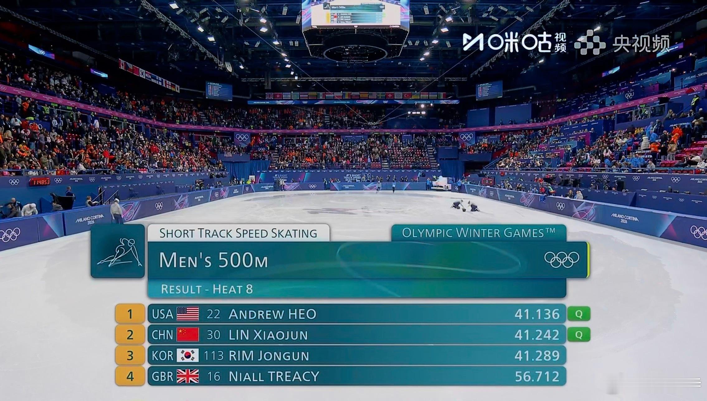林孝埈500米顺利晋级 米兰冬奥会短道速滑男子500米预赛,林孝埈滑出41.242,以小组第二稳稳晋级1/4决赛。加油加油🙏v观冬奥会 | 全民聊冬奥