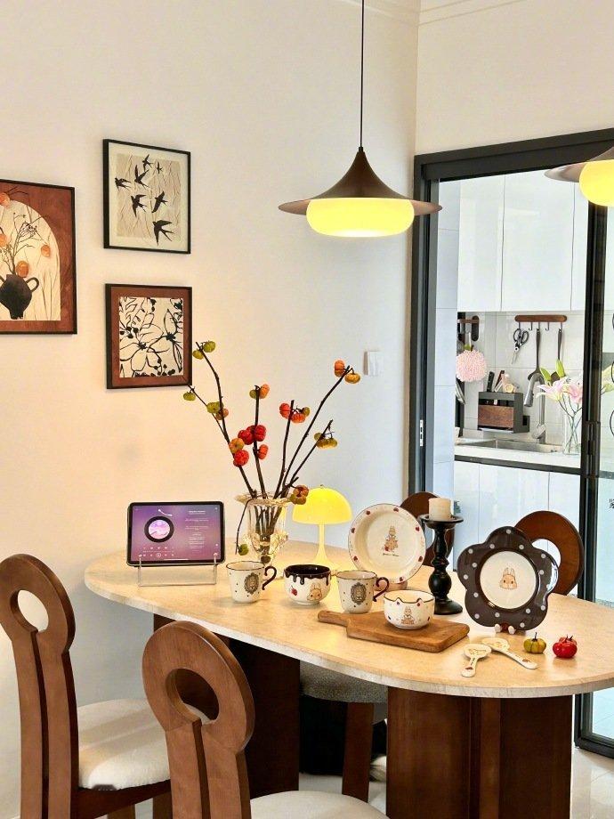 暖色系客餐厅,餐桌选对直接封神|主打🟤🟠⚪️暖色系