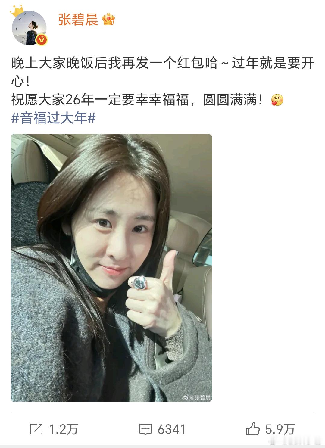 张碧晨晚饭后还有红包张碧晨发完大额红包还预告晚饭后还有红包,什么财神驾到🥰姐