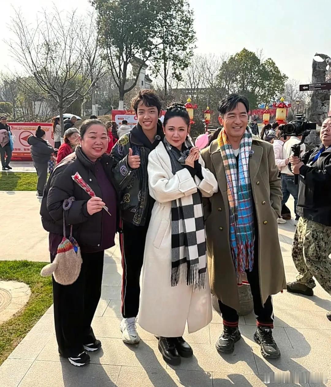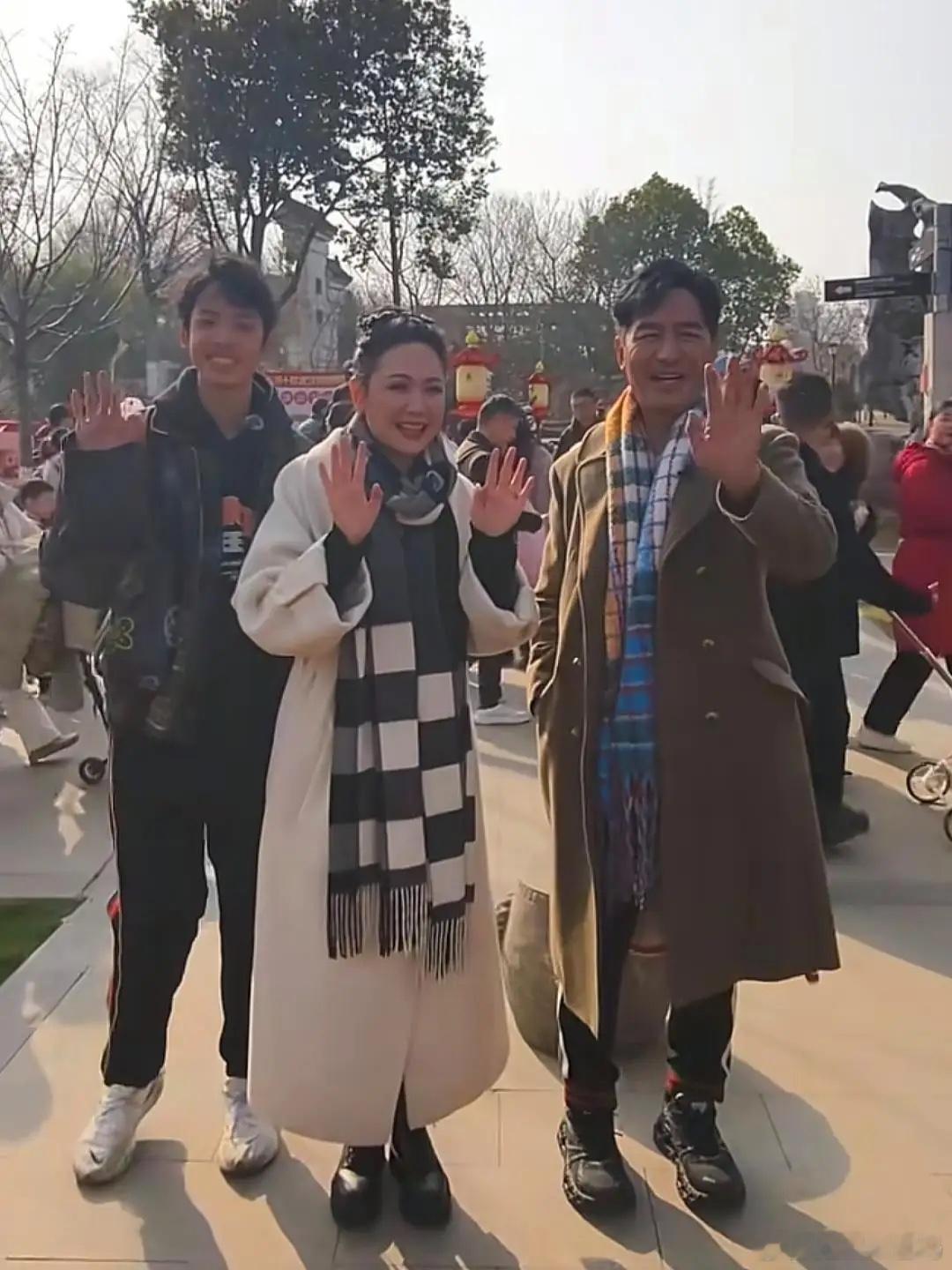 郭晓东和老婆程莉莎带15岁儿子回山东老家过年,夫妻俩装扮时尚又贵气,程莉莎面色红润,气质优雅,状态好年轻,父子俩皮肤黝黑,他们的儿子颜值非常一般,儿子身材高瘦,皮肤黝黑