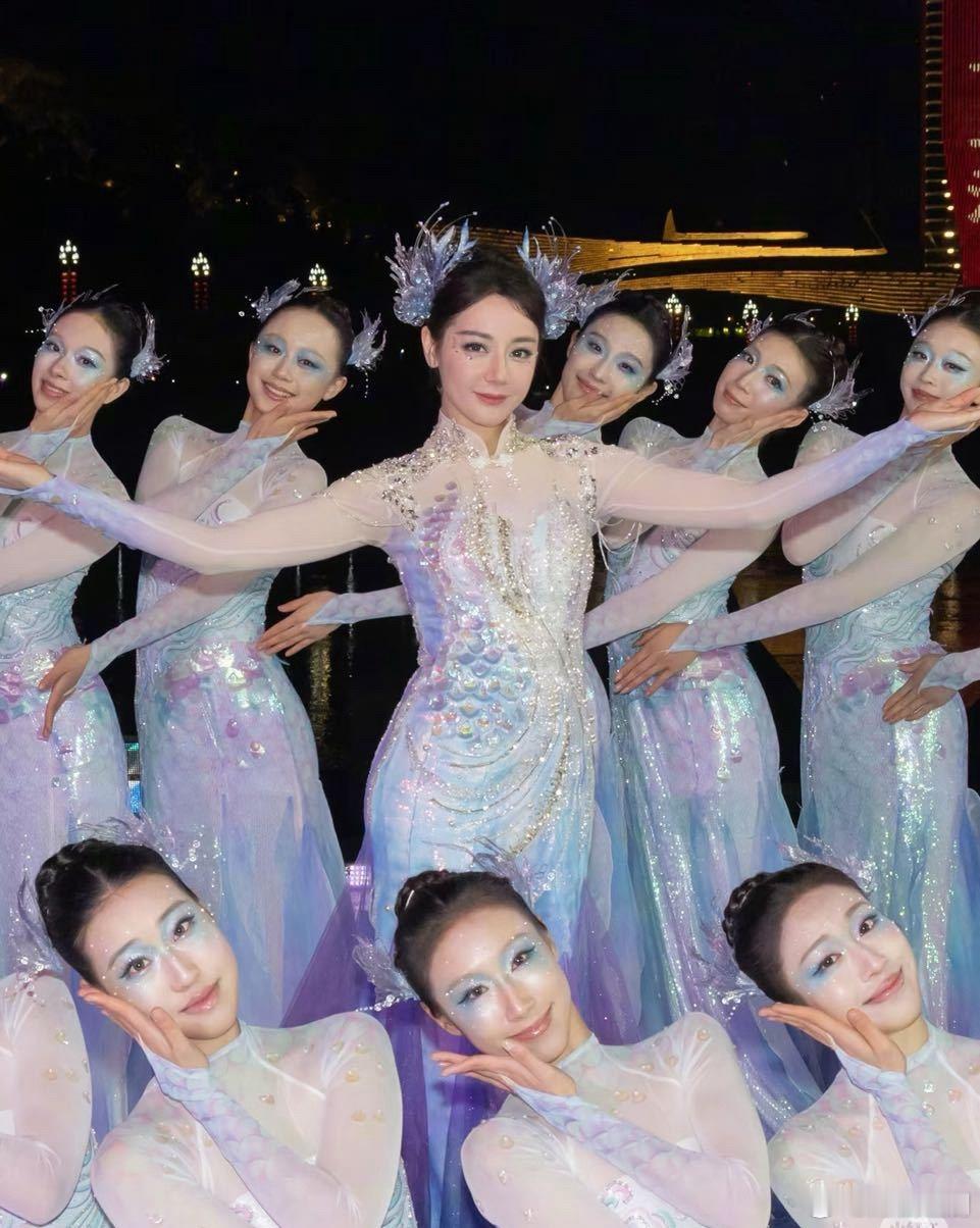 迪丽热巴长胖了?春晚分会场跟舞者的合影,舞者都好瘦。也有可能跳舞的就是瘦,把迪丽