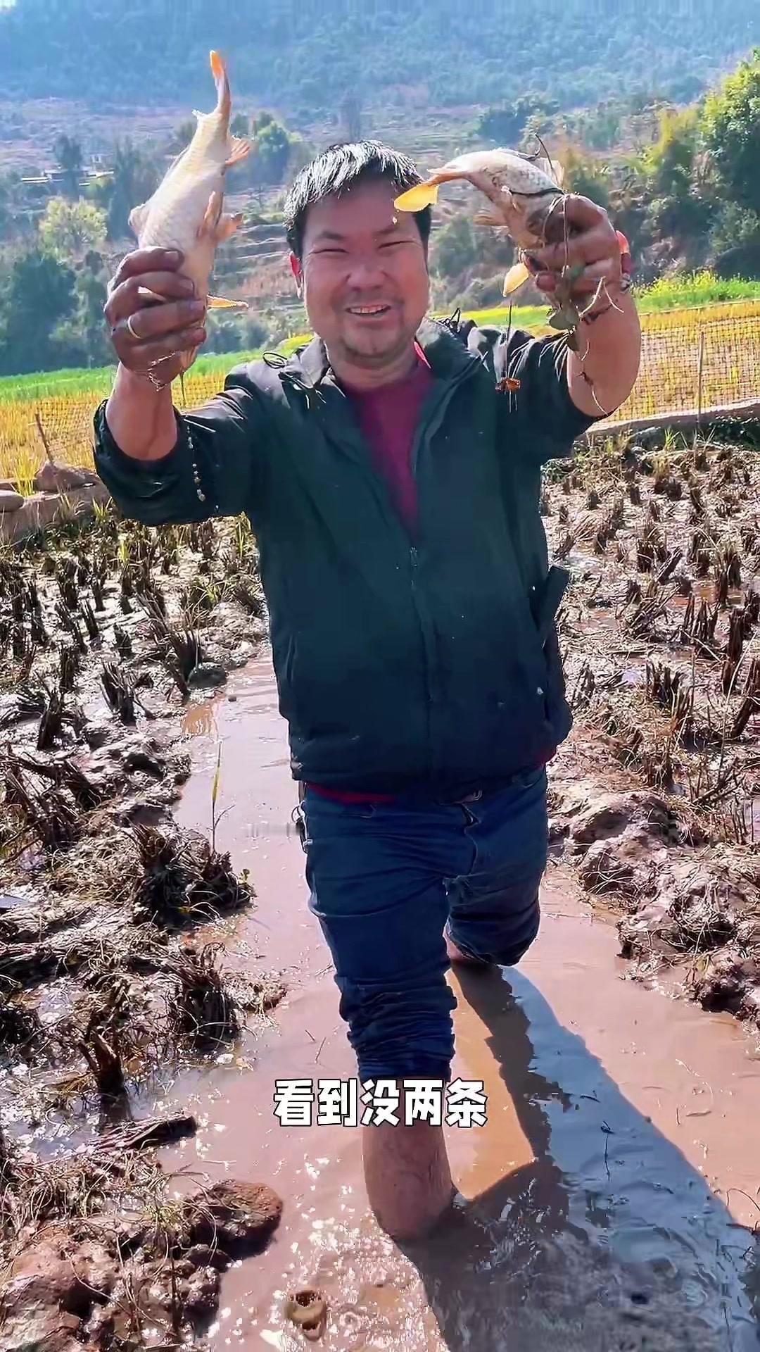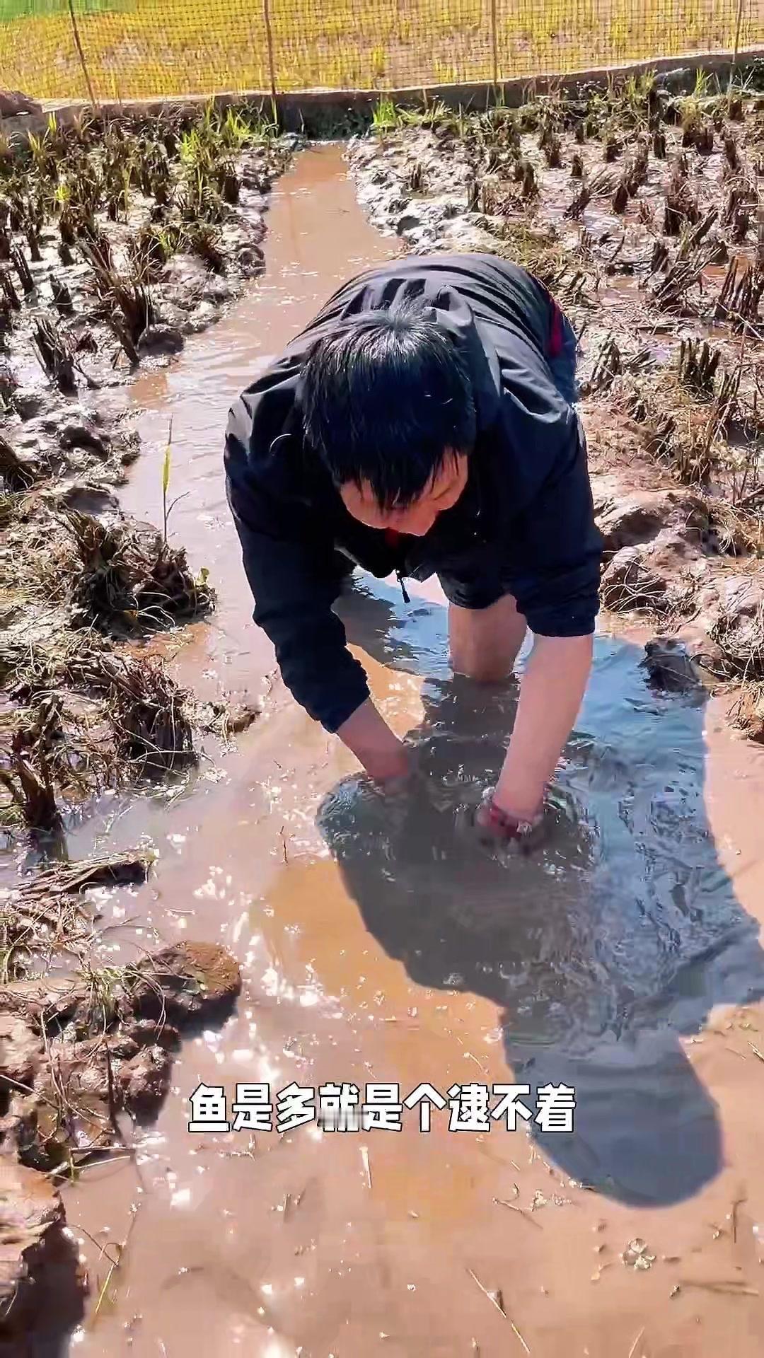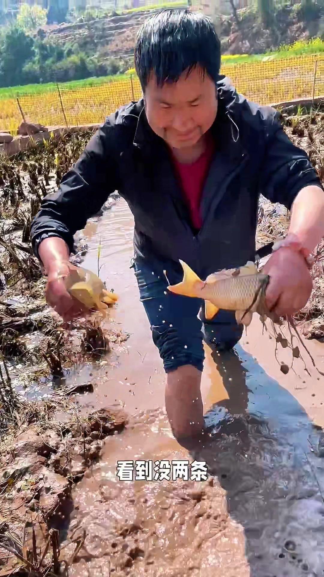 明天就是过年啦,跟着同学去稻田逮鱼,提前感受年味儿~水放干后大家都在浑水里摸鱼,看着金黄的稻田鱼活蹦乱跳,抓起来时手感超棒。 1️⃣现场超热闹:大家挽起袖子在田里穿梭,水花溅得老高,笑声就没停过。有调皮的鱼总从手里溜走,逗得大家直乐呵~ 2“年年有余”收获满满:不一会儿就逮了好几条,看着这些活力十足的稻田鱼,感觉新年的好兆头都藏在这里啦。 摸鱼的快乐真的很简单——泥土的气息混着鱼跃声,如果你来农村过年,一定要试试这种接地气的“年俗活动”!