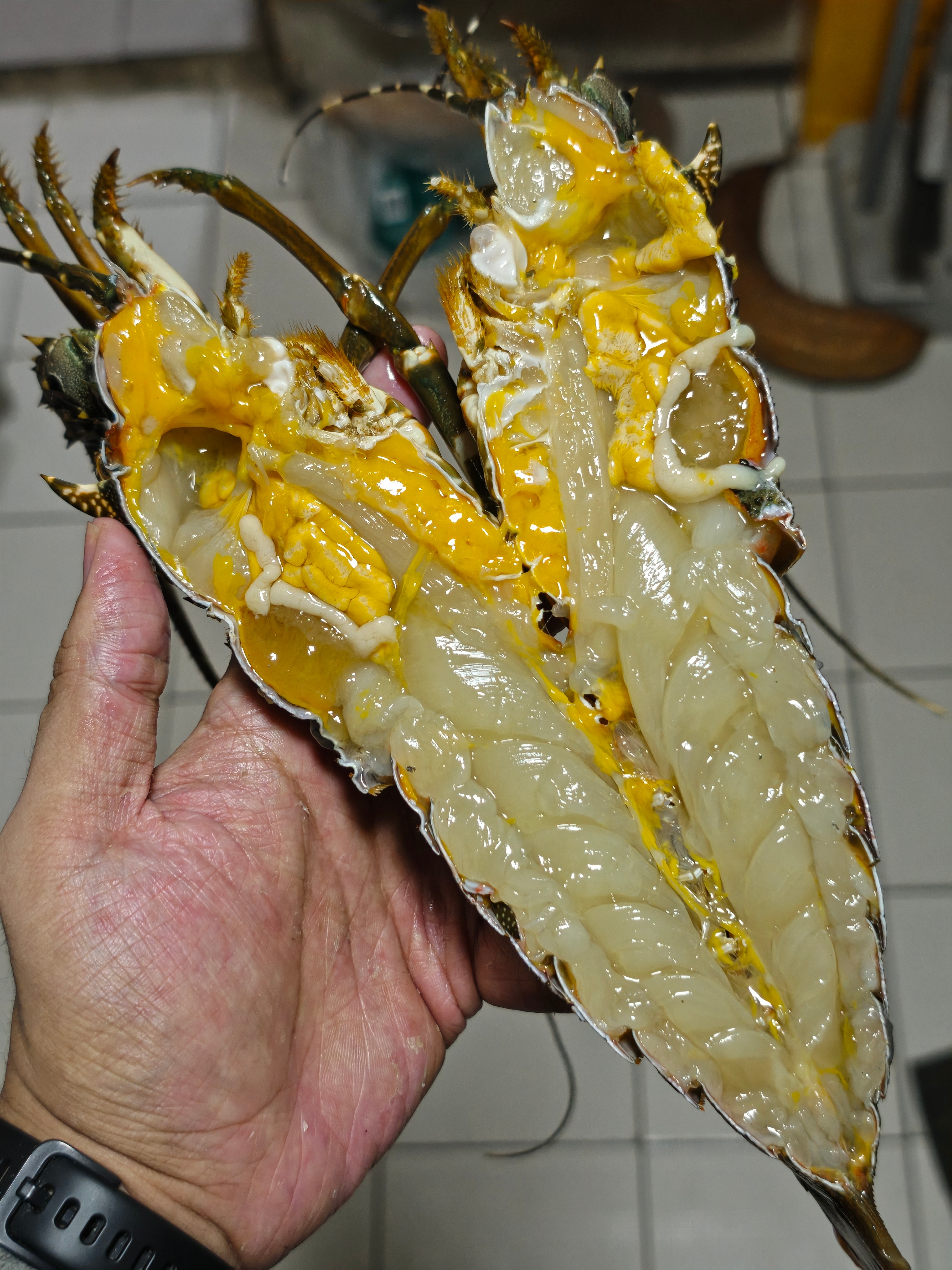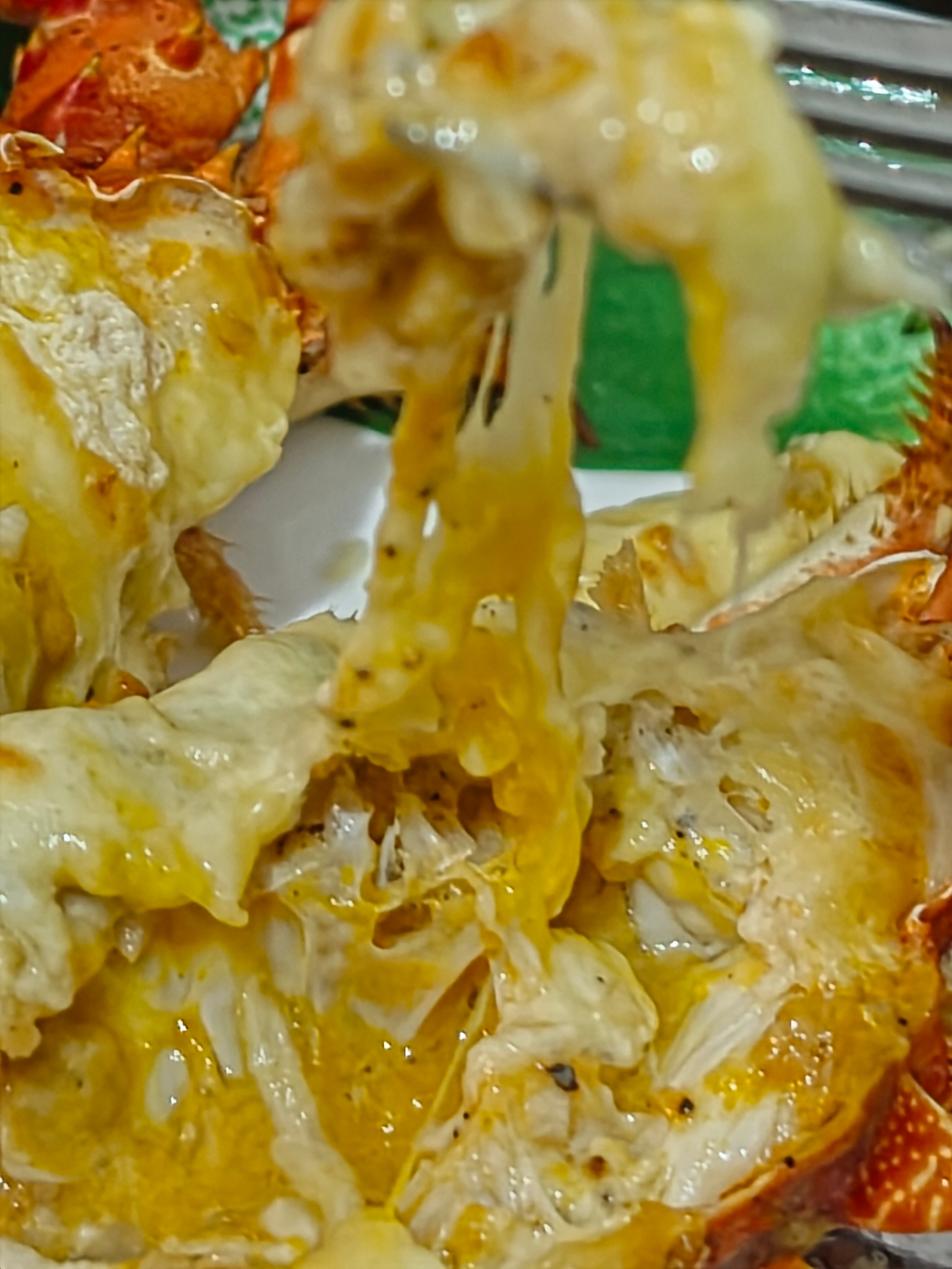 大家吃小青龙还是蒜蓉蒸比较好。我这个是刚登天的龙虾,切开了去掉胃,肠就行。可以去腮,也可以不去,反正不吃。活的要放尿,登天的洗洗,把果冻状血去掉就行了。然后刷上黄油炒蒜封住鲜味,这个蒜真的超级香。撒上黑胡椒,再铺上马苏里拉奶酪上烤箱就行了。我这里面还混合了切达芝士片。空气炸锅的话倒一点牛奶免得太干。