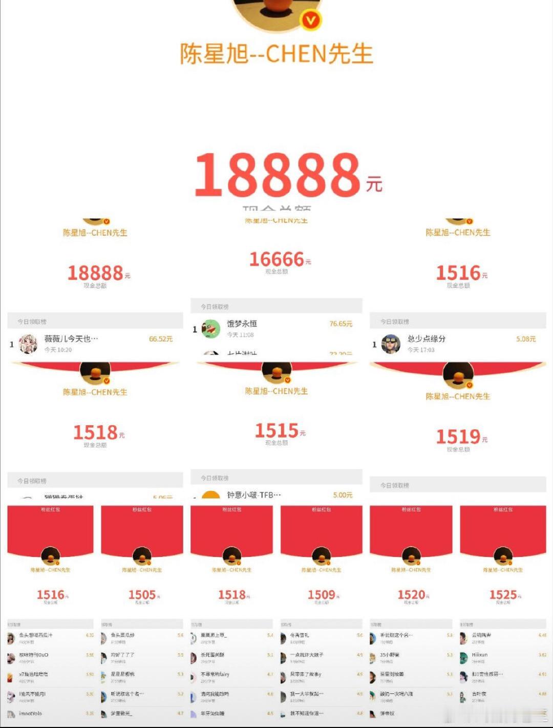陈星旭发红包好大气,发了这么多,结果还被截图其中之一的1518,说发的少也没看人