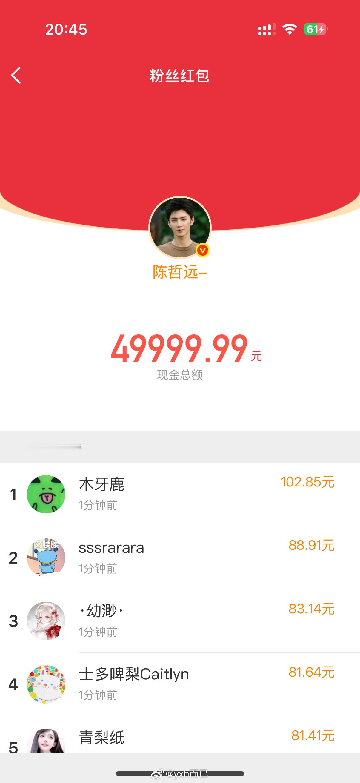 陈哲远红包好大方的陈哲远,虽然我没抢到