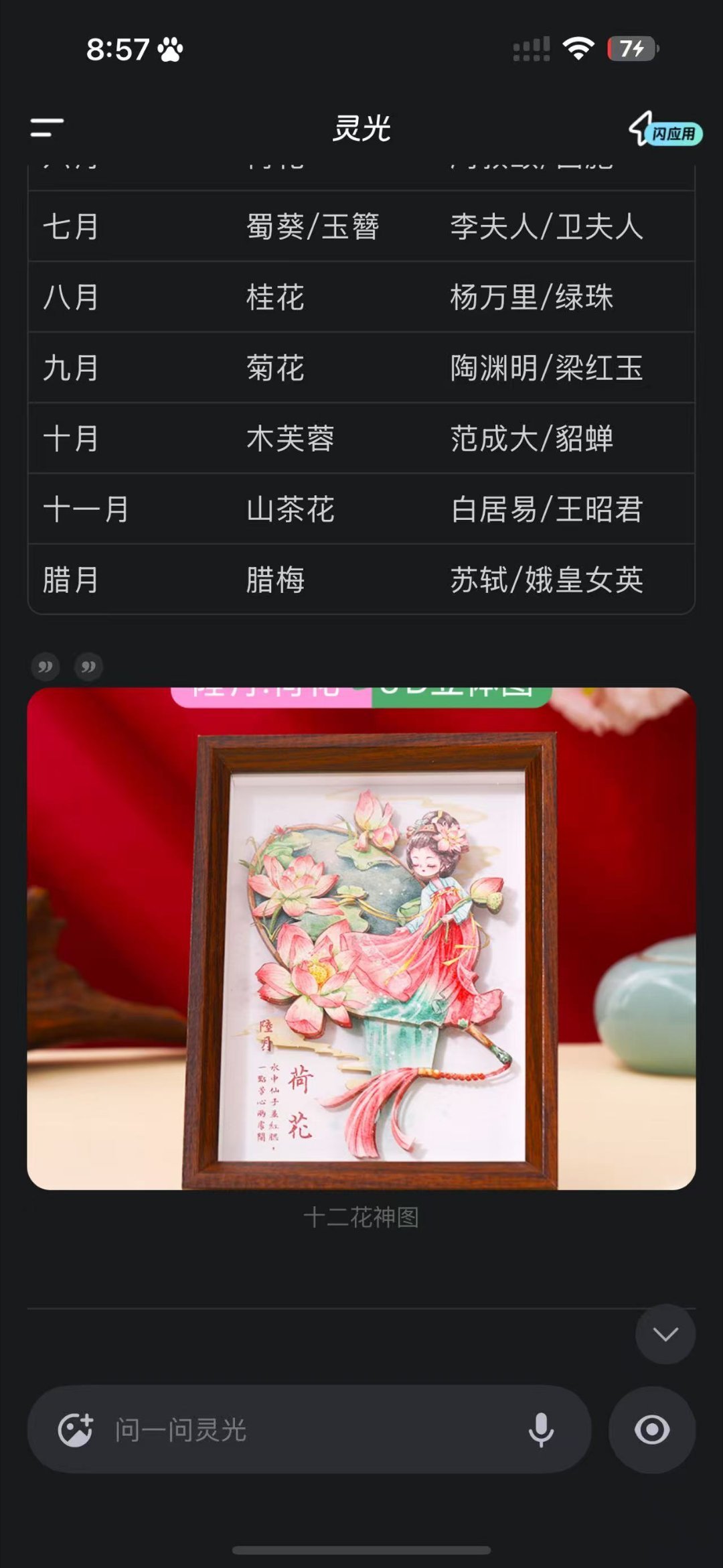我的马年抓马之旅刚看完节目被花神们美翻了,用灵光查了一下十二个每个花神都有对应的寓意,原来我最喜欢的6月荷花对应的是西施啊,边看春晚边长知识还挺有趣的灵光带你去抓马