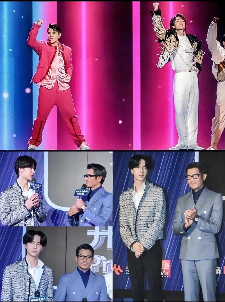 不是我说,央视春晚, 到底是哪个天才想出来的, 居然让60岁的郭富城,配合王一博全开麦唱跳! 关键还是在移动阶梯上闯关式飙舞,所以这含金量也太足了吧!我甚至想说,这哪是春晚表演,分明就是唱跳界的巅峰传承嘛,毕竟每一个细节都藏着天王与少年的极致诚意! 《闪耀动起来》是今晚第七个节目,一登场就炸穿了舞台天花板 。节目组特意搭建了动态阶梯与旋转平台组成的机关舞台,两人全程在移动装置上边走边跳,既要精准避开障碍,又要保持唱跳节奏,简直就像“春晚版赛道闯关”。 最让人惊叹的是全程全开麦,郭富城的经典唱腔稳如CD,王一博的Rap吐字清晰有力,气息稳到仿佛装了定海神针。 造型上也是各种细节!郭富城身着经典亮片西装,复刻了标志性的机械舞和太空步,年近六旬依旧肢体舒展,每一个定格都尽显天王底蕴。 王一博则身穿高定羽毛刺绣夹克,用凌厉的Krump街舞精准回应,卡点精准到发丝。 据说为了这次合作,他提前半个月进组合练,反复抠郭富城的经典手势细节,两人对视时的默契一笑,直接让现场氛围达到顶峰。 而台下的长辈们跟着熟悉的旋律拍手哼歌,年轻人则疯狂截图保存直拍名场面,总之老少皆宜! 顺道问问大家,是否觉得他俩这节目看得挺过瘾?郭富城唱歌 王一博
