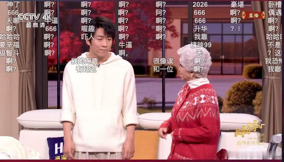 春晚直播间发送最多的弹幕 春晚直播间刷屏最多的弹幕居然就是“啊?”。这波刷屏高峰正好赶上蔡明的小品《奶奶的心愿》,满屏的“啊?”真的太真实了,完全是大家实时的第一反应!实在太活人了