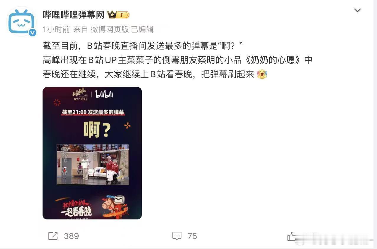 春晚直播间发送最多的弹幕春晚直播间刷屏最多的弹幕居然就是“啊?”。这波刷屏高峰