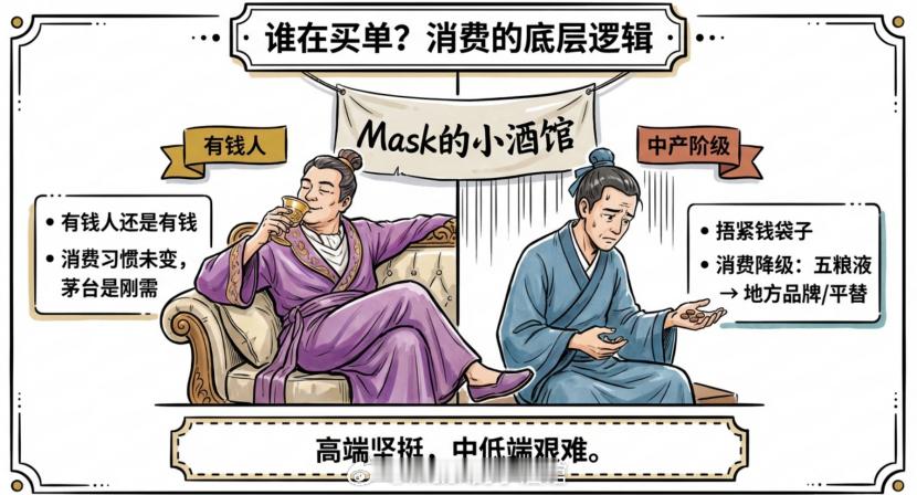 说到底,今年春节的白酒市场其实是中国消费市场的一个缩影:高端消费依然坚挺,有钱人的购买力没有受到太大影响。但中低端市场就比较艰难了,价格敏感型消费者在捂紧钱包,消费降级的趋势很明显!看懂这个分化很重要,别被表面的数据迷惑,要透过现象看本质。茅台涨价说明白酒行业在复苏,但复苏也在分化,不是所有的白酒企业都在复苏,五粮液和国窖价格稳定也不意味着它没有压力。每个品牌的处境都不一样,逻辑也要跟着调整。但总体来说,茅台作为白酒的大哥,他卖得好,其他白酒也更有底气。这说明大家并不是不爱喝白酒了,等消费复苏的进程加快,其他白酒的销量和利润也会跟上。到时候这些现在所谓的老登行业,可能真的要翻身了!