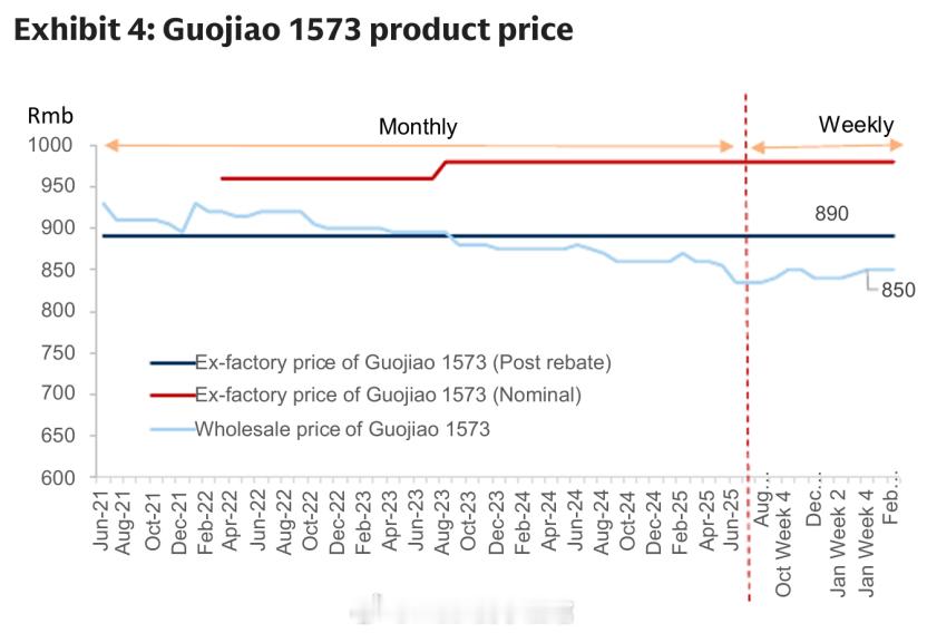 但次高端的白酒还在苦苦挣扎,比如五粮液和国窖1573,价格基本没动,稳稳地停在850块的位置: