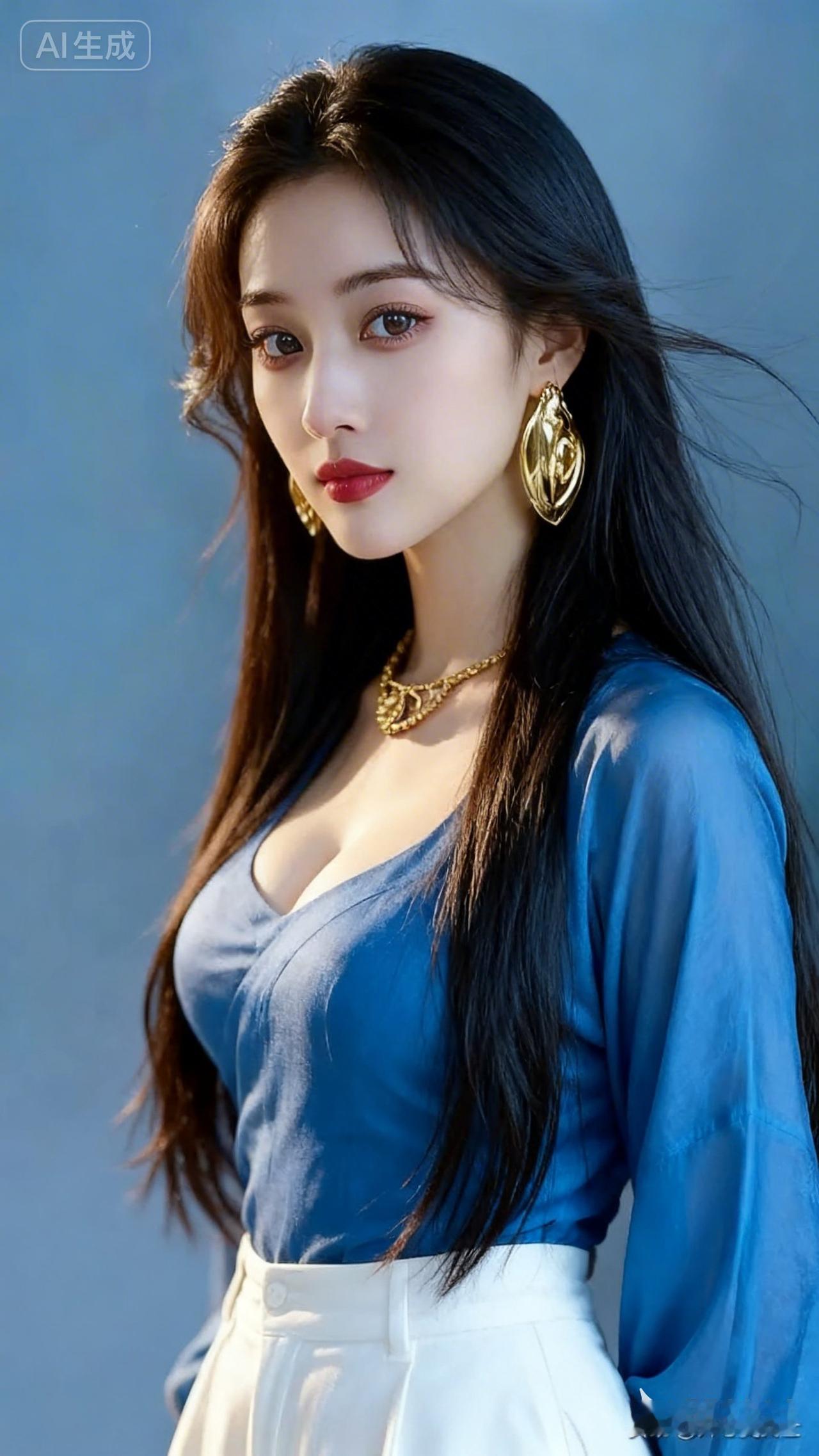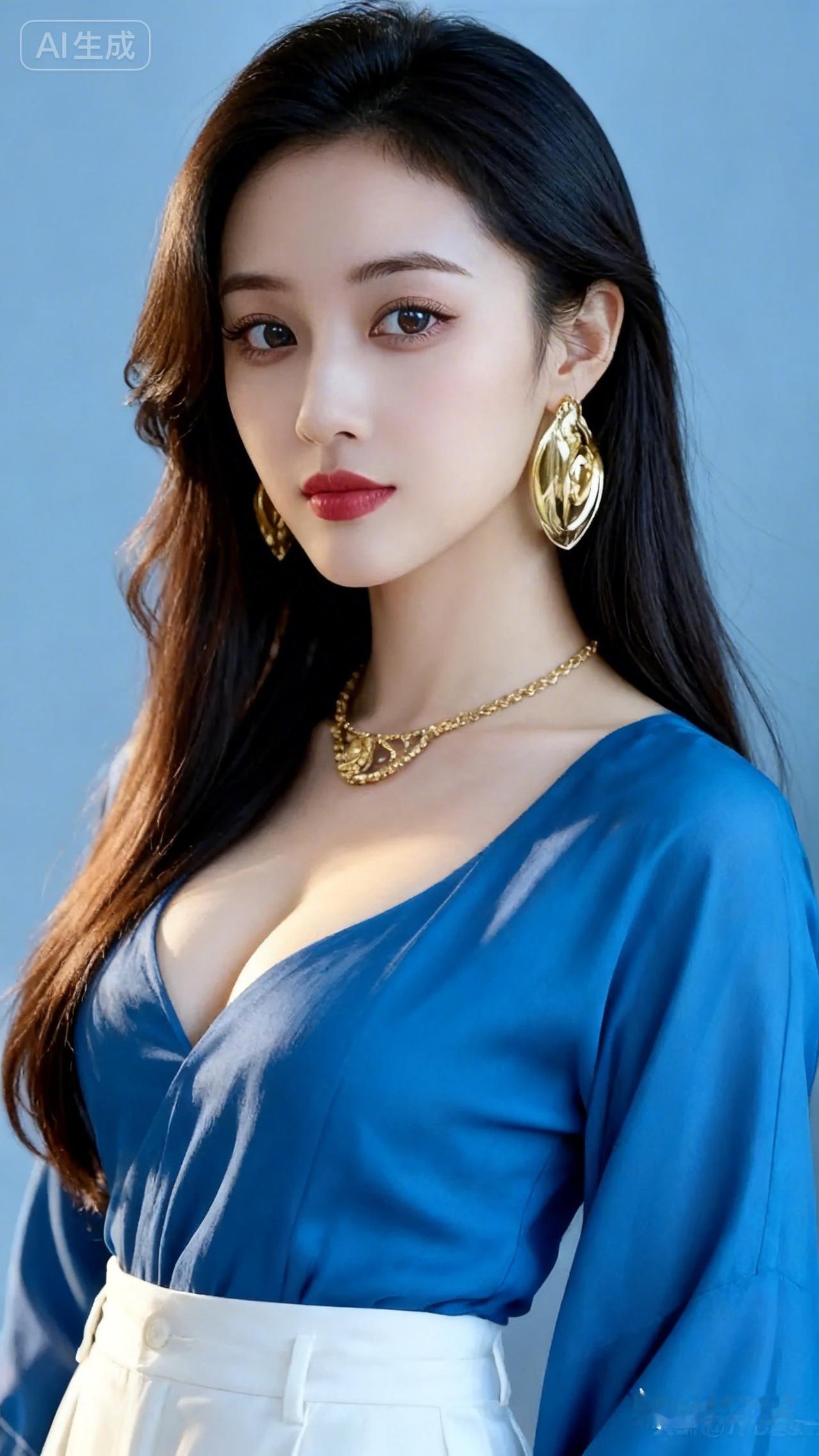 优雅蓝裙搭配华丽珠宝,尽显高贵气质!💎✨