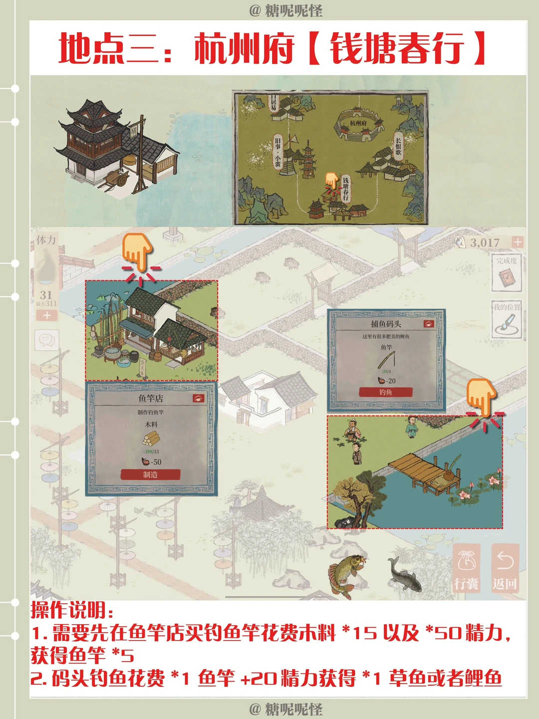 江南百景图桃花村钓鱼改了,已经完全不想在桃花村钓鱼了[doge][doge][doge] 整理了其他城市探险的钓鱼,目前只有苏州府桃花坞的和改之前的桃花村钓鱼是一样的,其他城市的探险钓鱼也比较复杂[哭惹R][哭惹R][哭惹R] 若有遗漏,欢迎补充[害羞R][害羞R]