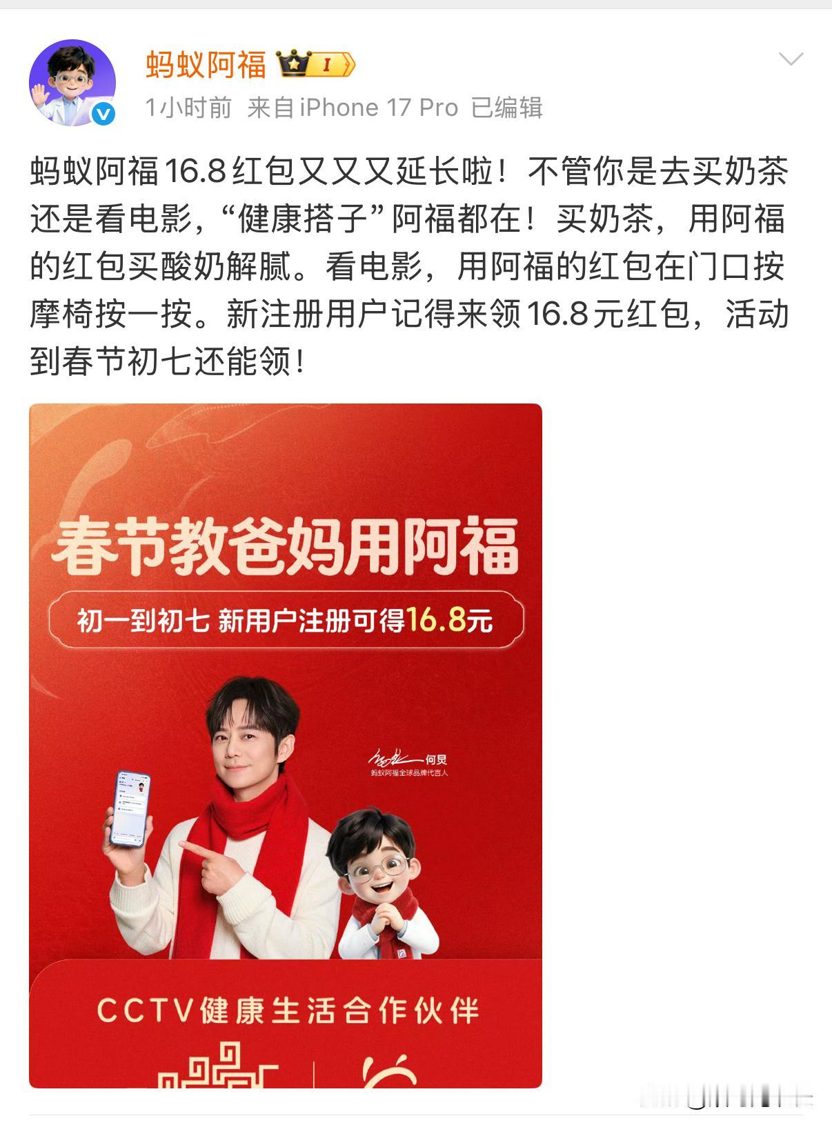 春晚官宣:阿福当选CCTV健康生活合作伙伴,携红包开启新春健康守护 今年的央视春晚舞台之外,细心的观众可能已经发现,蚂蚁阿福以“央视CCTV健康生活合作伙伴”的身份正式亮相了。作为何炅力荐的AI健康管家,阿福这次不仅仅是混了个脸熟,更是带着实实在在的新春礼包和专业技能,走进了万千家庭的视线。 随着春晚的官宣,阿福同步开启了新春福利:新用户可以领取16.8元的红包,而且春节假期7天每天都能领。返乡年轻人可以趁着长假陪在父母身边,手把手教他们如何使用这个AI小助手。 据介绍,阿福经过1000多位名医训练出来的,是一款专攻健康领域的AI。长辈们在家庭群里经常转发的养生帖和各类谣言,问问阿福,就能快速辨别真伪。 更贴心的是,很多老人拿回体检报告看不懂,现在只要拍个照传给阿福,那些晦涩难懂的专业术语就能被翻译成听得懂的大白话,让长辈对自己身体状况做到心中有数。 阿福还考虑到老年人的使用习惯,专门设计了“长辈模式”。界面字体更大,支持语音问答,甚至连很多方言也能听得懂,沟通几乎没门槛。 健康是福,健康的事就问阿福。这个春节,与其送长辈一些闲置的补品,不如帮爸妈下载阿福,拿下那份16.8元的红包,给他们配上一位随叫随到的AI健康管家。