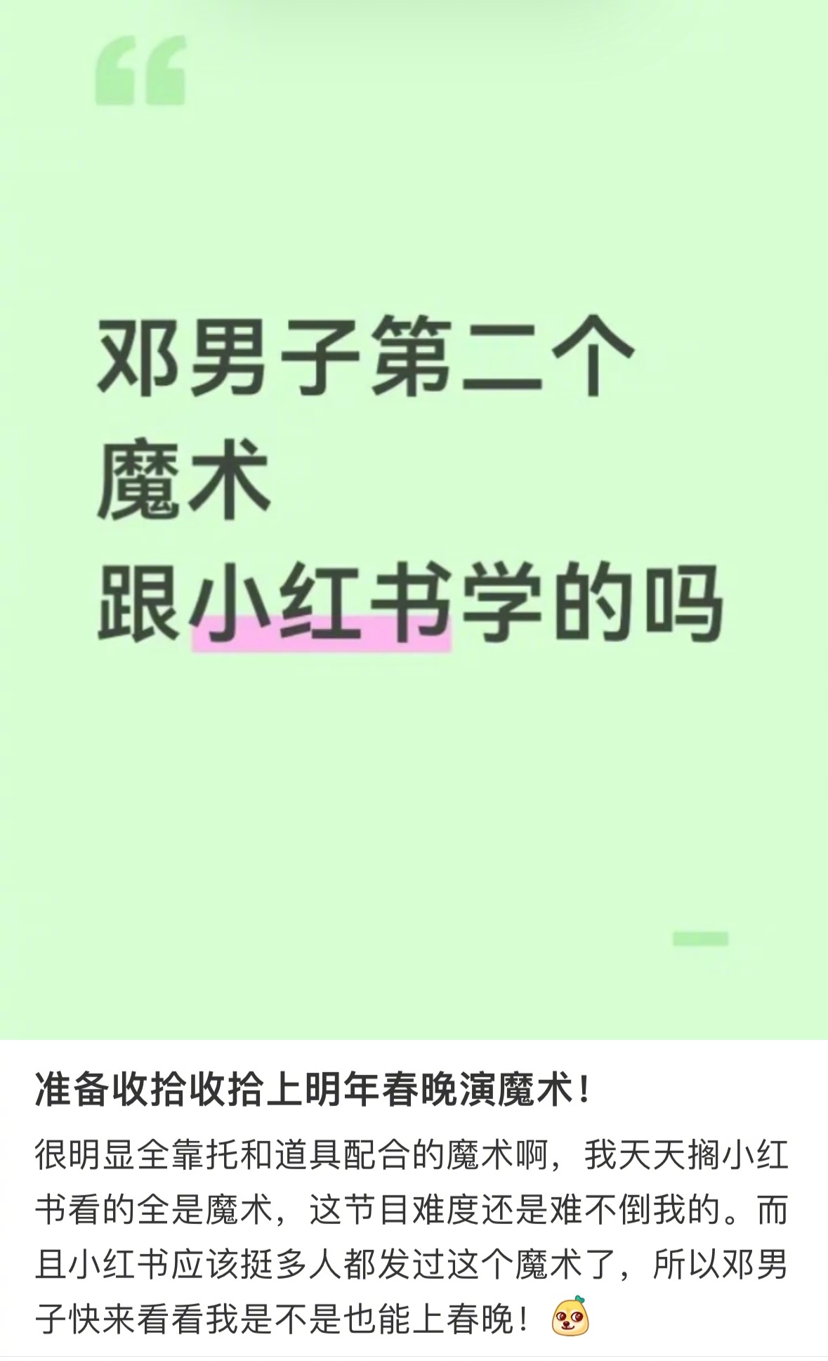 魔术 比小品好笑还是小红书厉害,魔术刚表演完,站内就开始各种帮希林娜依高出主意怎么取下戒指,说用胧月的那个笑死我了