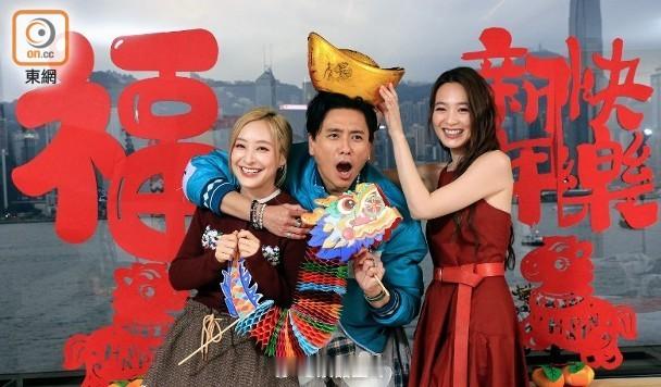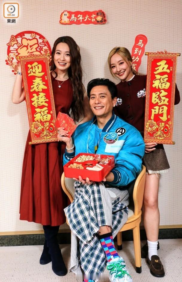 Bosco孖蔡潔(左)、陳瀅同大家拜年。