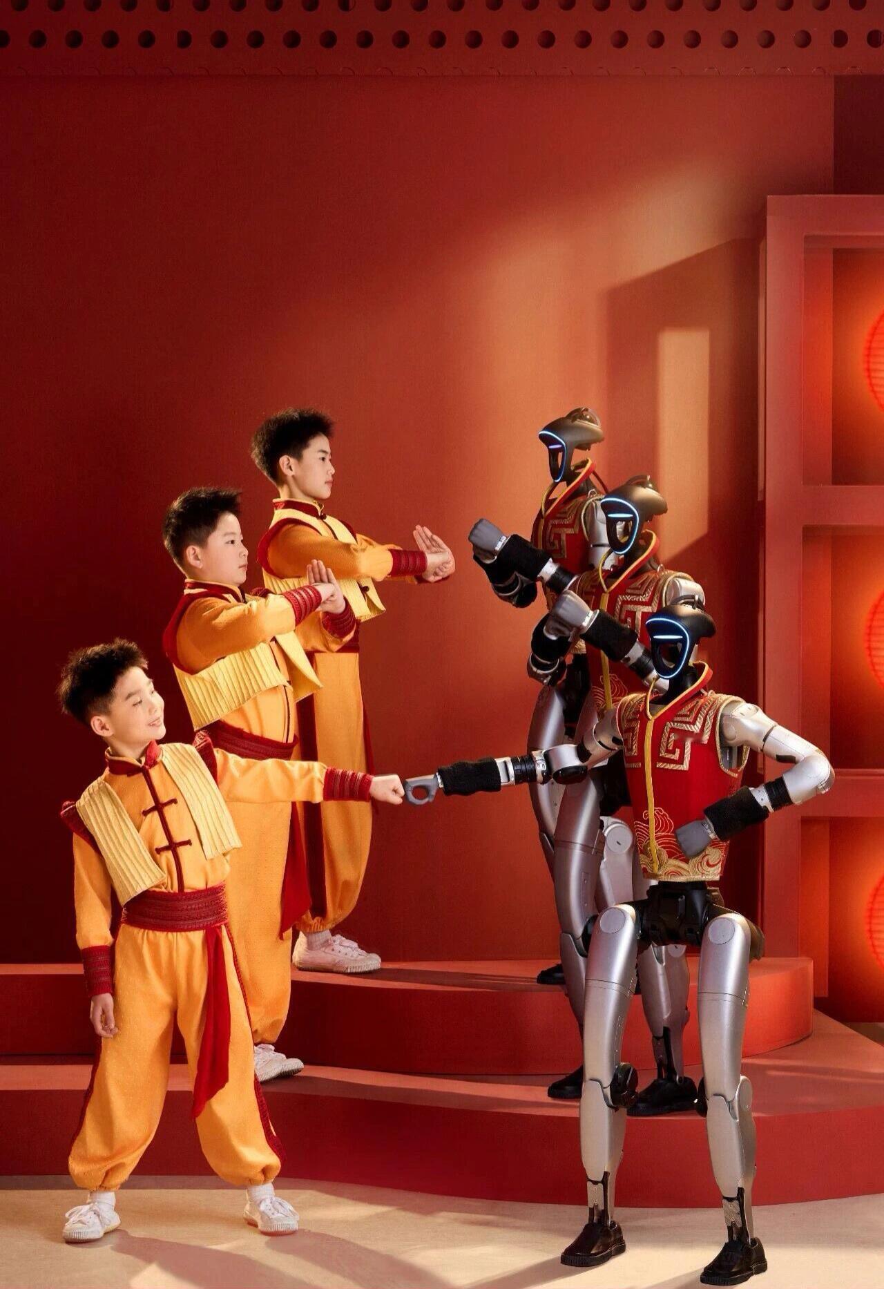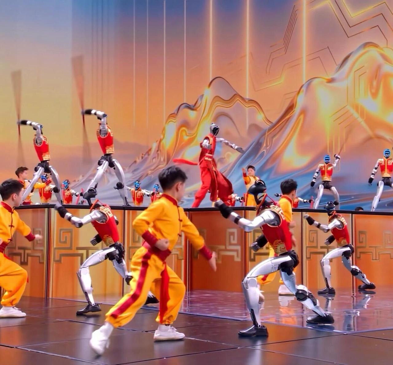 去年丢手绢的机器人,今年直接开始练武术了 说实话,醉拳摔倒那一刻,我慌了——这要是起不来了,我的心要碎了。 这还是春晚吗?纯纯东方赛博啊~ 一群身穿武术服的机器人,稳稳扎着马步;机械臂与少年们同步冲拳,空气仿佛都为之一振。 2026央视春晚《武bot》,将“人机合一”写进了现实。 宇树科技的机器人,不再只是冰冷的金属,它们学会了武术的灵魂。 每一个精彩的劈叉,每一次干脆利落的空翻,都在与塔沟武校学员的气韵同频共振。 传统武术的精气神,被代码重新编译。 我们仿佛看到,千年的武学传承,在科技的加持下,衍生出了一种全新的、充满力量的美学。 人亦刚,机亦柔,这一瞬,中国功夫在赛博世界,开了新花。