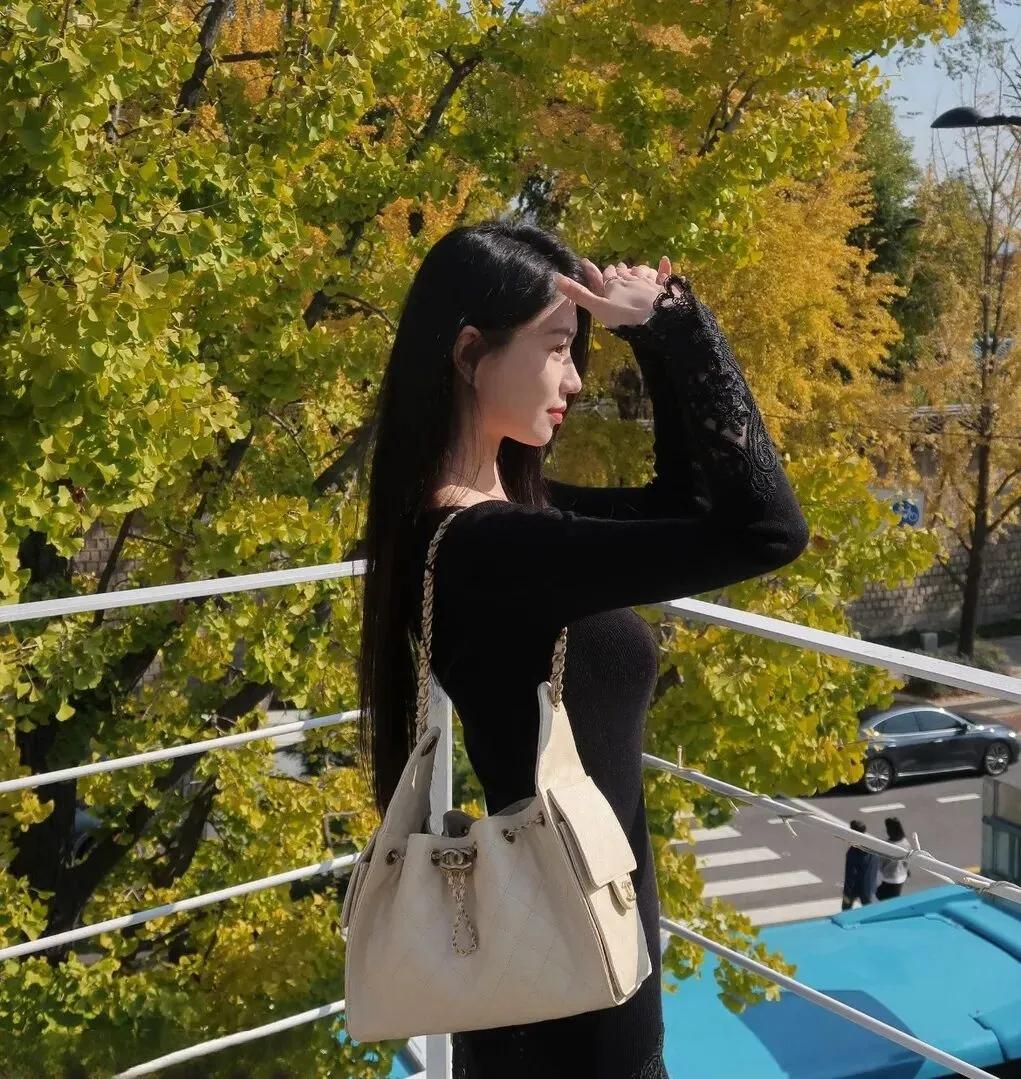晚风轻拂,暮色温柔。一字肩的针织裙裹着暖意,在城市的流光里,你抬眼一笑,便