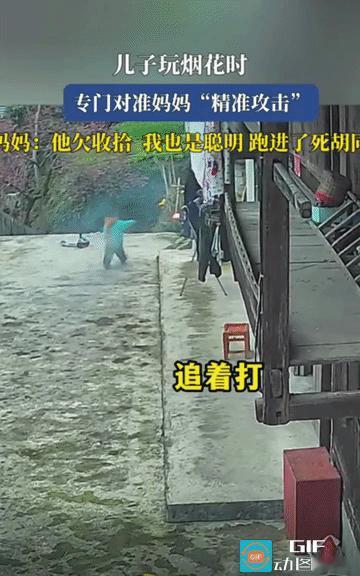 亲生的!绝对是亲生的! 小孩子看到妈妈被自己吓得东躲西藏时,也兴奋了,笑哈哈的追了上去…… 不过,妈妈她能跑过炮仗吗?这是一个问号。