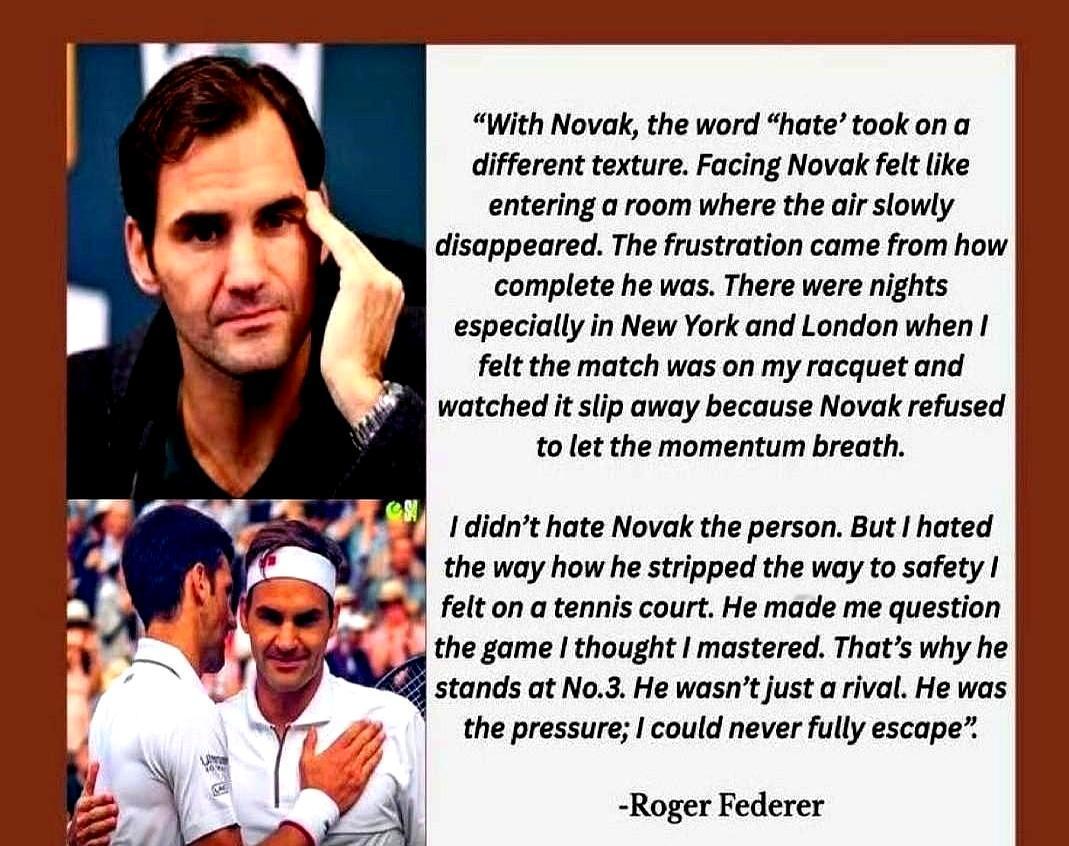 费德勒亲口承认,他最怕的人,让他从天王变成了“被动”的球员。 不是德约科维奇。他亲口说,纳达尔才是头号“宿命克星”。那种感觉,是优雅被左旋球一寸寸撕碎,是掌控力被生生剥夺,被拖入最不想打的泥潭里肉搏。 你以为这就完了?他点名萨芬,那发球“是一堵墙,任你怎么砸都找不到缝”。还有德约,他用了“完美”这个词。技术没漏洞,心理硬得像铁,你领先多少分,都感觉他下一秒就能翻盘。 所以,让传奇感到身体无助的对手,和让传奇感到心理绝望的对手,哪个更让人窒息?