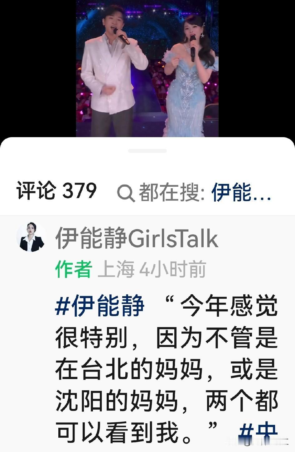 伊能静:今年特别! 刚刚,伊能静在个人账号上传了一段视频,并配文:今年感觉很特别,因为不管是在台北的妈妈,或是沈阳的妈妈,两个都可以看到我。 伊能静是个情商智商都很高的女人,从嫁给秦昊后对秦昊的事业辅助很大,还历尽艰辛给秦昊生下了一个女儿,尤其是与婆婆相处得特别好。此次登上2026年央视春晚,伊能静与苏有朋合唱了经典的《踏浪》,这首轻快的歌曲瞬间将观众带回了共同的青春岁月,因为她和苏有朋都是台湾人,他们融入春晚这张“中华儿女全家福”,让她的此次登台更具“回家”的温情意味,也生动诠释了两岸文化传承的延续性,以及“两岸同胞的心从未分开过”的主题。 伊能静说“台北和沈阳的妈妈都能看到我”,表达了她对两位母亲的深情孝心,以及身处“两岸一家亲”盛景中的归属感。今年春晚的全球直播,让她打破地理距离,实现让两位长辈“同时同刻”在电视机前见证自己舞台高光的心愿,彻底填补了往年无法兼顾的亲情遗憾 。她说婆婆说“咱们家的孩子火了”,其实也从侧面反映了她们的婆媳关系很好。 今年的春晚,伊能静不管是服装、唱功、颜值还是各方面都很突出,给伊能静点赞,愿天下的婆婆都能找到伊能静这样的好儿媳!