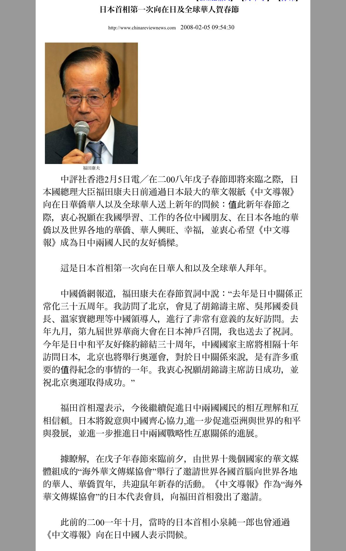 自2008年福田康夫起,日本已有10位首相、19次向华侨华人致春节问候。前14次均通过华文媒体、用简体字发布,多提及中日友好;2022年岸田上台后改在首相官邸官网发布,不再谈中日关系,并新增繁体、英文版本,刻意覆盖台湾等地区;石破、高市早苗均延续这一做法。 高市说“衷心期盼新的一年为世界带来和平,让尽可能多的人重新过上安稳的生活。” 并强调:“在当前国际形势下,日本将为国际社会的和平与繁荣发挥更大的作用。” 日本政府此前也曾发布庆祝春节的首相贺词。高市早苗首相此次未提及往年贺词中出现的“在日本活跃的华侨、华人朋友们”等表述。 和当年安倍晋三特意用生涩的中文开头的新春贺词相比,高市这贺词发的不情不愿,只是被逼出来应付一下做做样子而已,完全没有一点诚意。 中日关系因2025年11月高市在国会围绕台湾有事问题的答辩而趋于紧张。从这个春节贺词可见一斑。 2月16日高市早苗的春节贺词如下: 春節を祝う全ての皆様に、謹んで新年の御挨拶を申し上げます。 現在の国際情勢の下、国際社会の平和と繁栄に、日本としてより大きな役割を果たしていく考えです。その中で、新しい年は世界に平和がもたらされ、一人でも多くの方が平穏な生活を取り戻せる年となることを切に願います。 本年は、午(うま)年となりますが、馬は俊敏で力強さを持ちます。さらに、特に丙午(ひのえうま)にあたる本年は、エネルギーと行動力に満ちた年になると言われています。 本年が、皆様にとって力強い希望にあふれた一年となることを願うとともに、皆様の御多幸と御繁栄を心よりお祈り申し上げます。 内閣総理大臣 高市 早苗 (中文) 值此春节之际,谨向所有庆祝春节的各位致以诚挚的新年问候。 在当前国际形势下,日本将为国际社会的和平与繁荣发挥更大的作用。在此之中,衷心期盼新的一年为世界带来和平,让更多的人能够重新过上安稳的生活。 今年是午年(马年)。马象征着敏捷与力量。此外,今年恰逢丙午之年,据说是充满能量与行动力的一年。 衷心祝愿这一年成为各位充满强大希望的一年,并祈愿大家幸福安康、事业兴旺。 日本内阁总理大臣 高市早苗