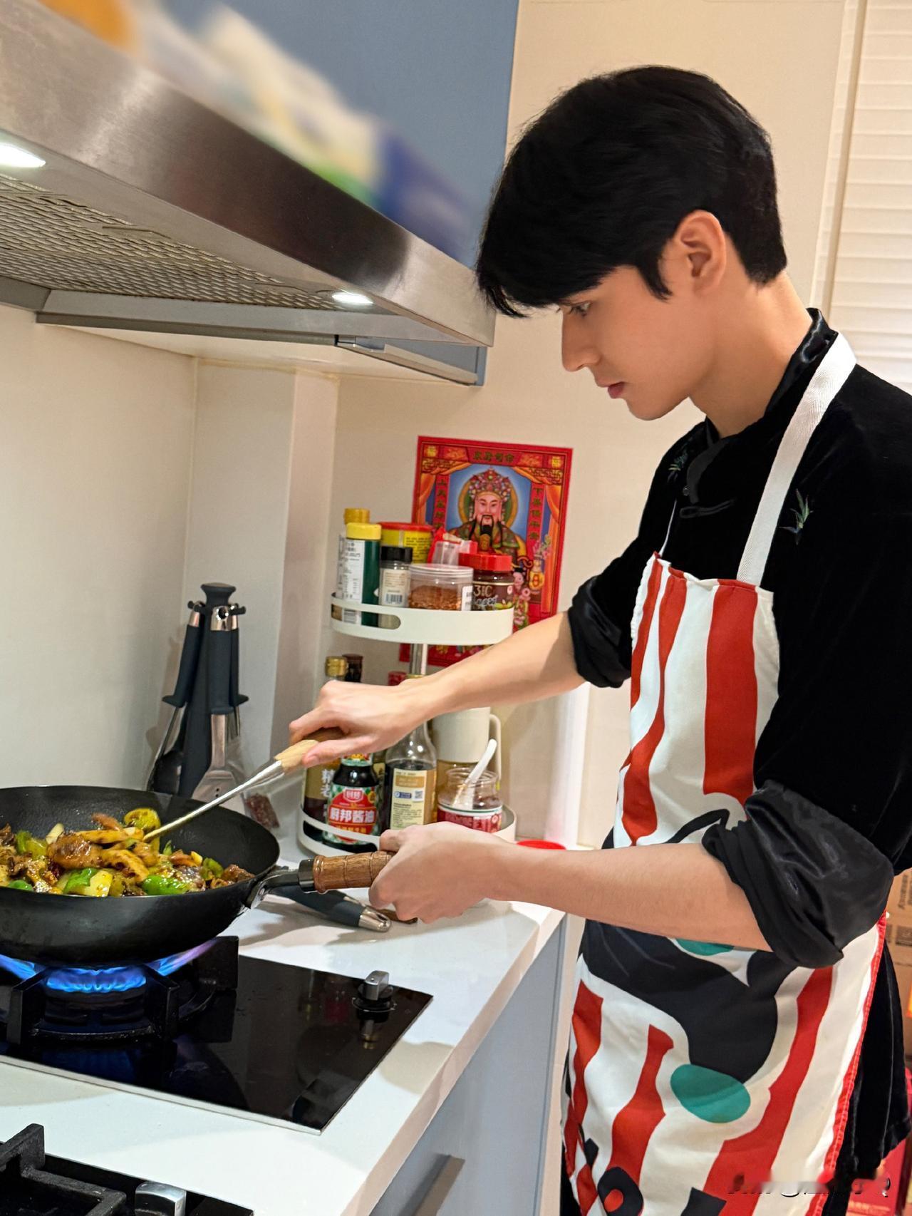 怎么说来着,认真的男人最帅,认真做菜且本身长得帅的男人更是帅得没边。 龚俊爱下厨,每年除夕之夜都会小露身手,今年也不另外。看着龚俊在灶台前摆弄锅碗瓢盆,人夫感拉满,以后不知道是谁家的姑娘有福气嫁给他,别提多幸福了。
