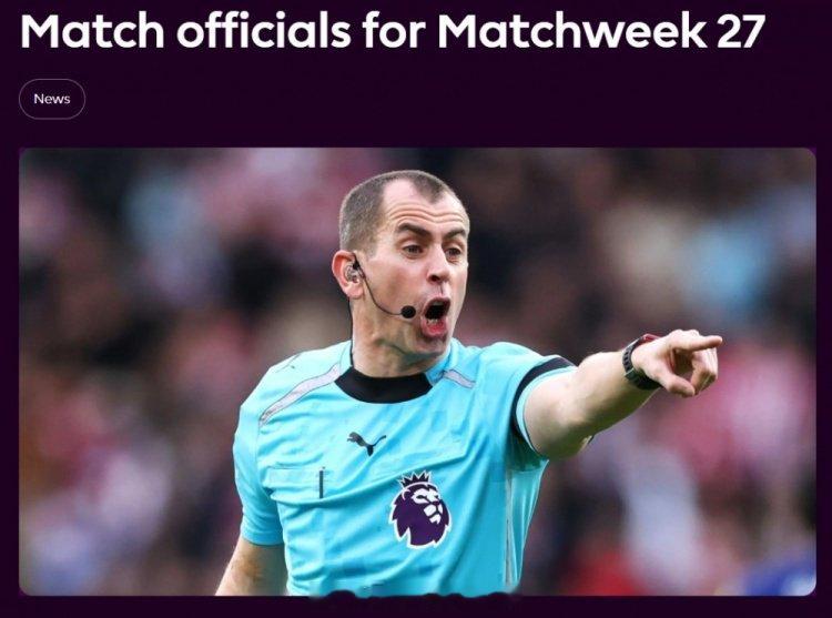 英超官方公布联赛第27轮各场执法裁判,彼得·班克斯执法热刺vs阿森纳,VAR:达伦·英格兰 阿森纳著名教授