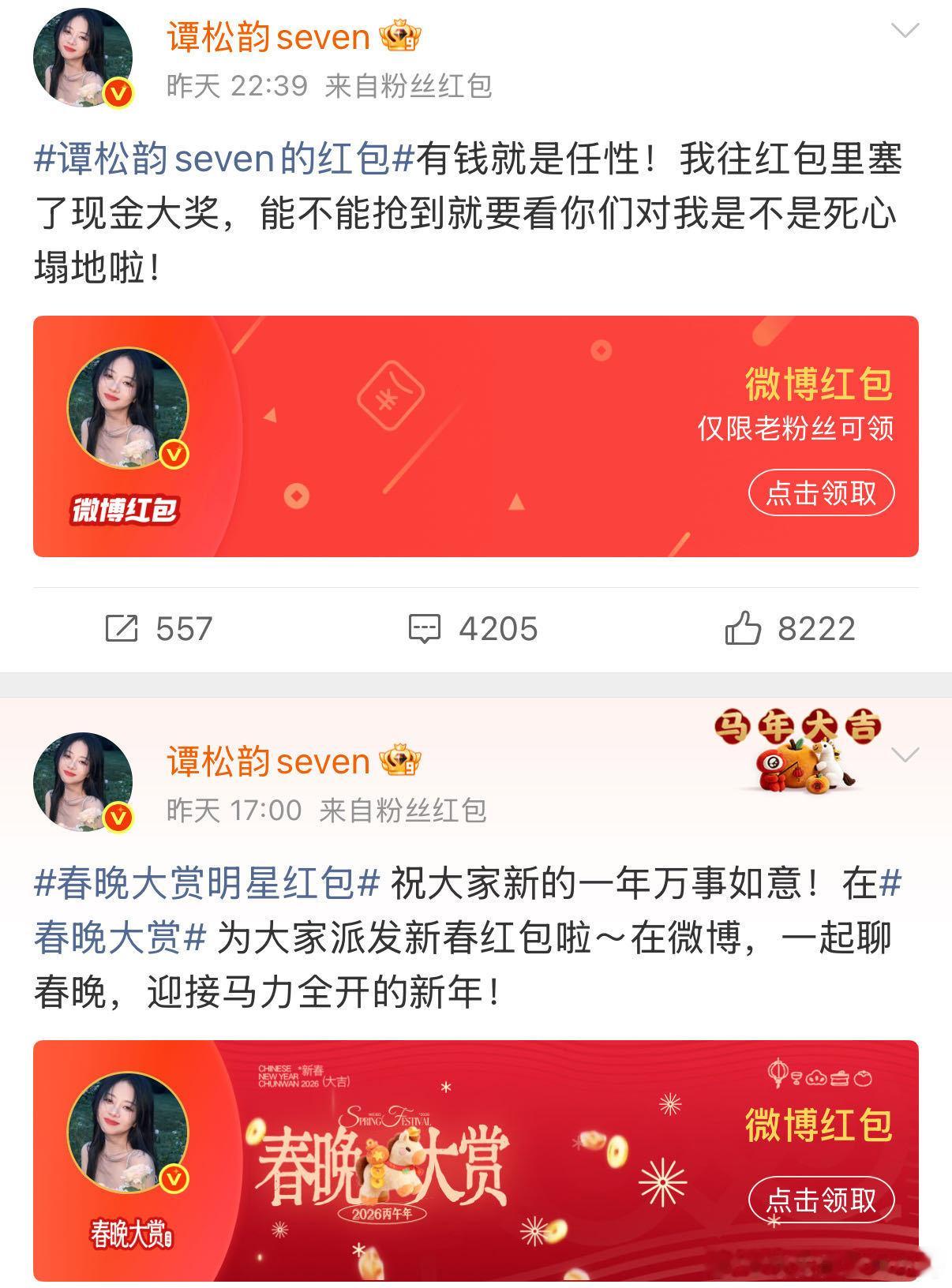 谭松韵红包谭松韵好喜庆 谭松韵空降发红包太惊喜!一身红火装扮超喜庆,马年第一份好运稳稳接住