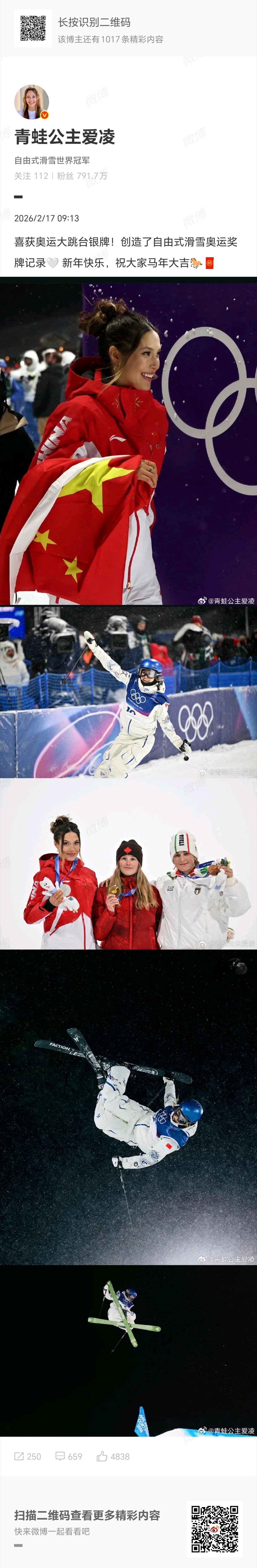 #谷爱凌发文祝大家新年快乐# 2月17日,发文:喜获奥运大跳台银牌!创造了自由式滑雪奥运奖牌记录🤍 新年快乐,祝大家马年大吉🐎🧧 #谷爱凌大跳台银牌#