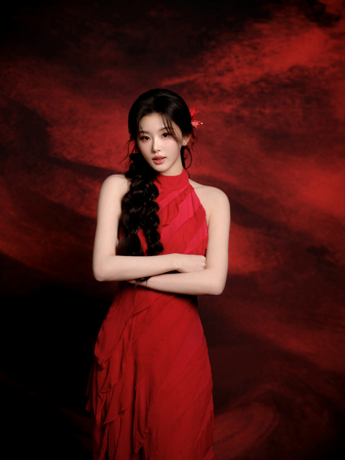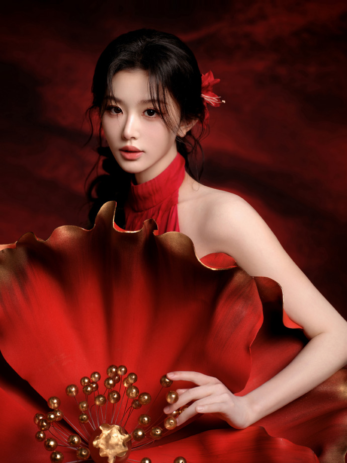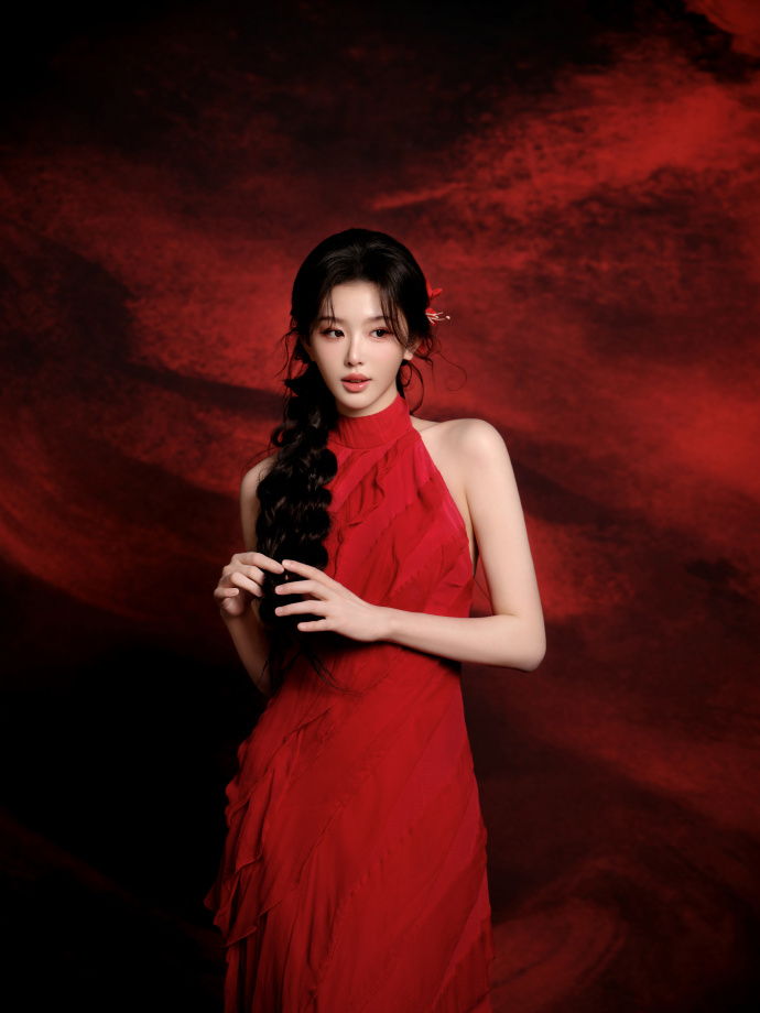 孔雪儿的红裙妆造,喜庆且明艳,感觉超不错的!